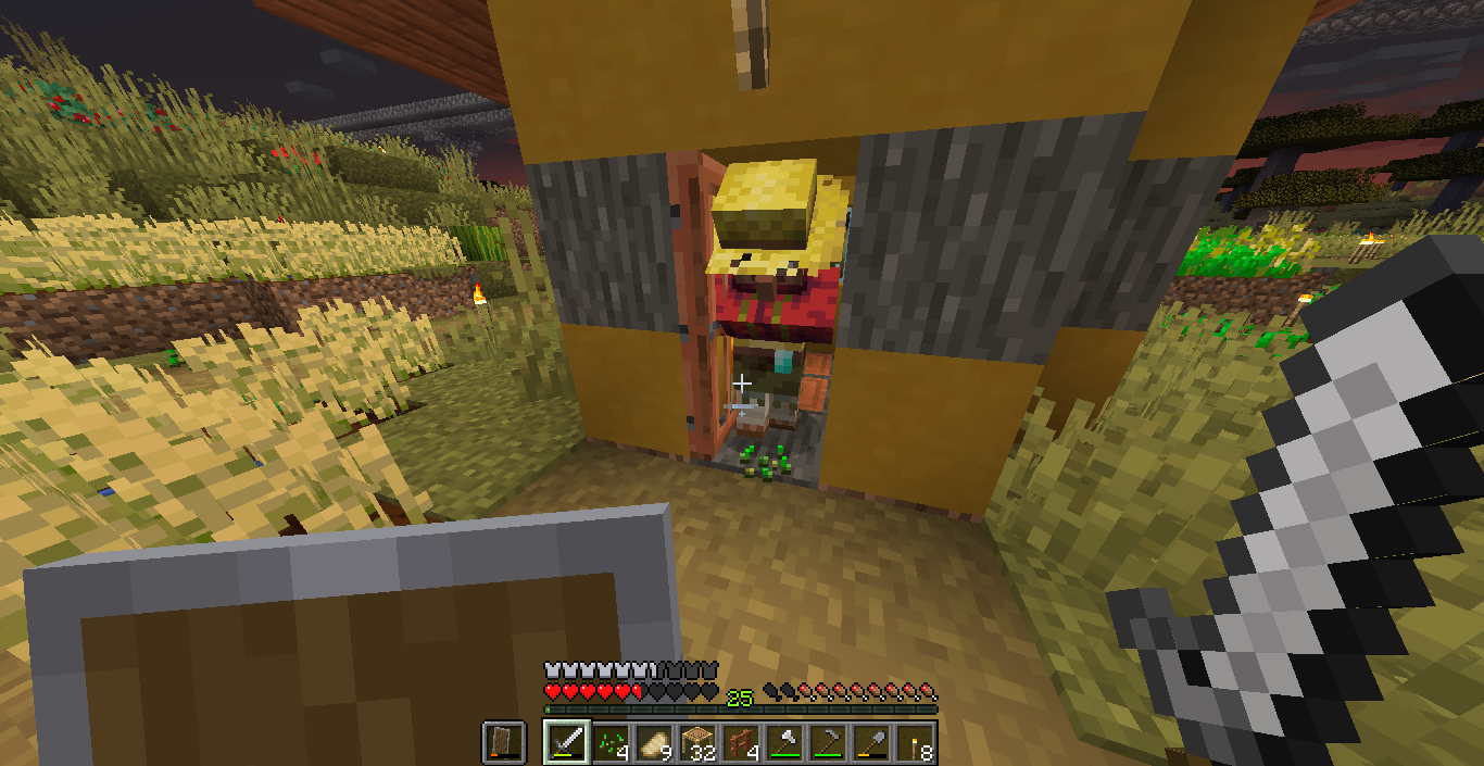 During night time, a villager wakes up from the bed and attempt to pick up wheat seeds, but then immediately goes back to sleep again without picking it up, and the whole process repeats itself.