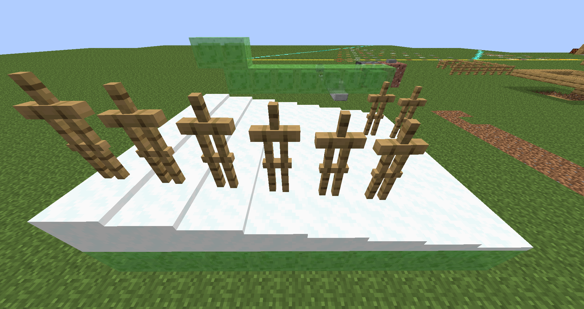 Place an armor stand on a line of slime block (5-6) with snow layers (or not)