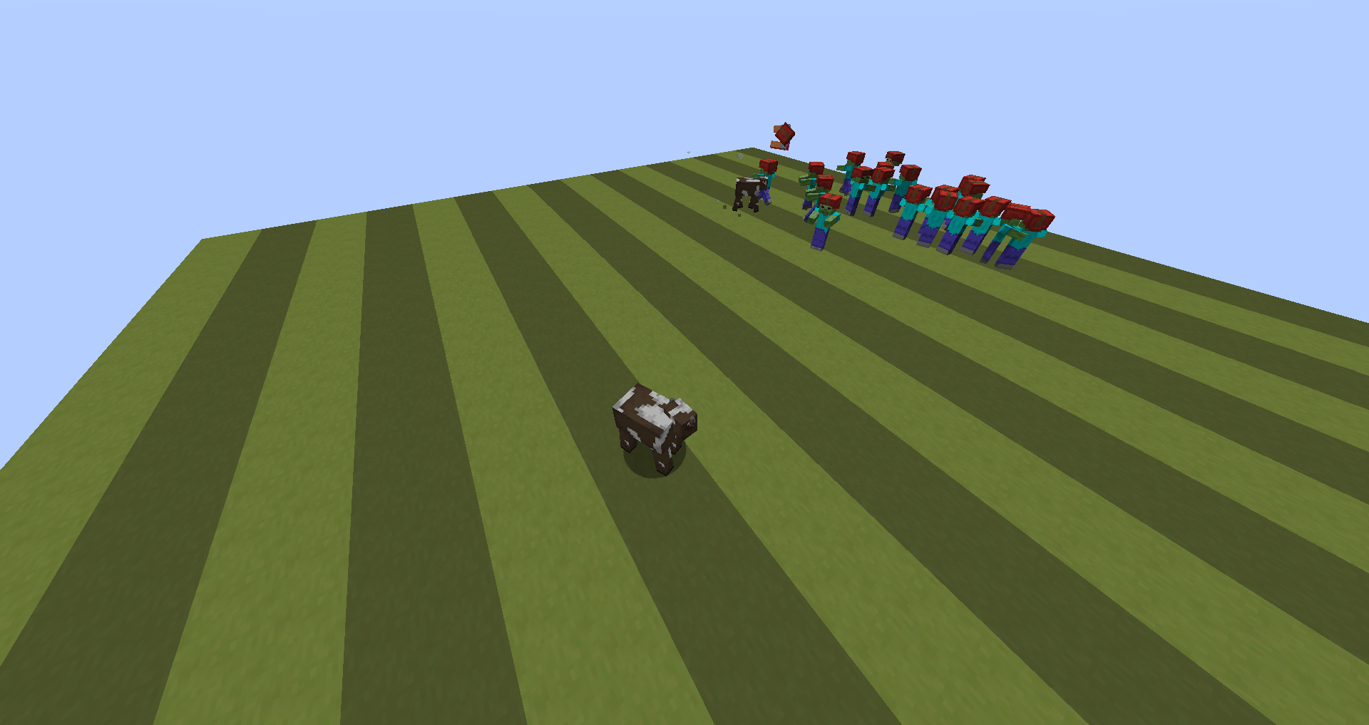 I am trying to create a map by making a cow by the name of Blue1, walk towards a mob by the name of Bob. I used a command (see 1). Then I spawned in a bunch of zombies by the name of Bob. Soon the Cows began to spin in endless circles, and then began to float although they should've been targeting only one zombie. Also, trust me, I did not give the cows levitation. Thanks!