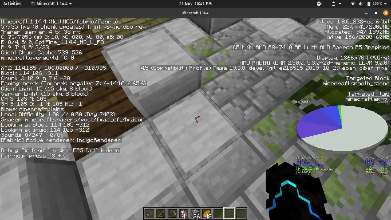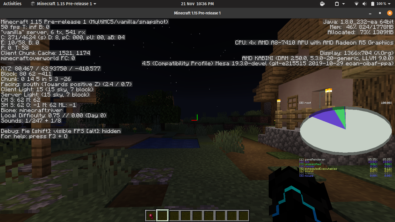 The debug pie chart when shift+f3 is pressed doesn't display correctly, to me I think it's upside down. I can confirm that it does display properly on 1.14.4, I have attached screenshots so you can see the difference.