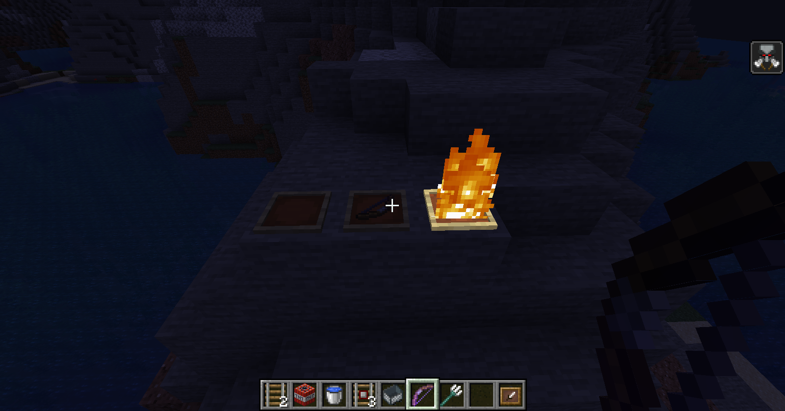 put a item frame put an item and shoot a arrow with a bow with the fire bow enchanment in the frame and you will see like the photo