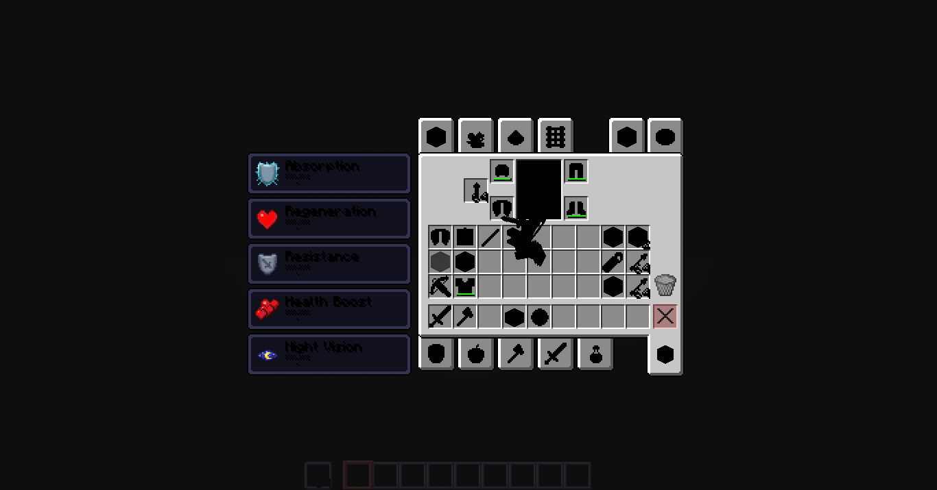 After falling into the void wearing the night vision effect, the player's model, mobs, items and the inscriptions on buttons and hats become black.