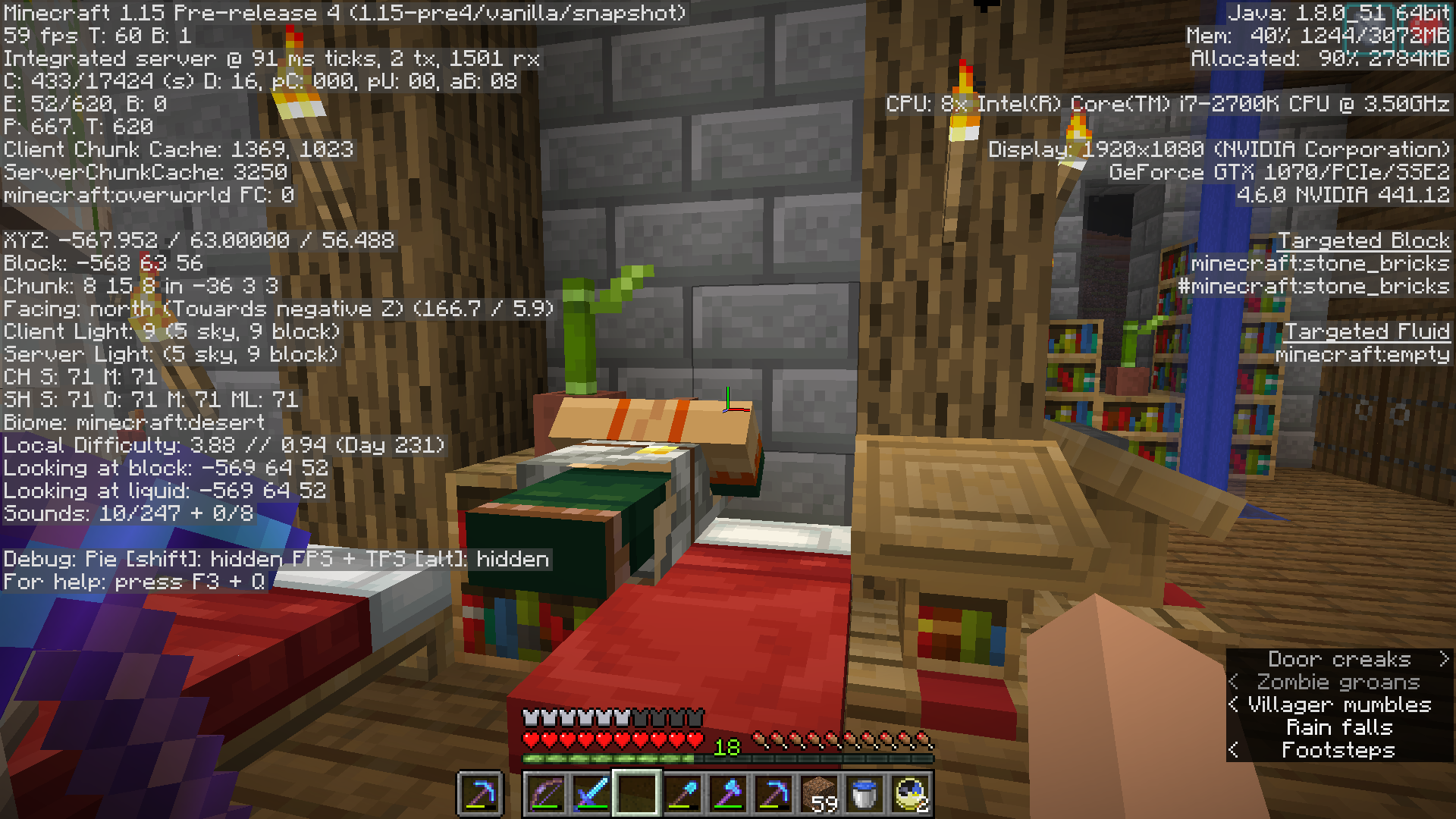 You can trade with a villager at daytime 3 a 4 times, then you hear the sound that he use his object to reset his trades, but his trade stays locked, after 3 times using his personal block you can trade then again 1 time and then the trade stays locked, but he use his object until it is villager sleep time, but i can't trade that much as you hear the sound that he is using his block. Librarian for example is looking at you, he is turning his page but after 3 times he stays locked but is still turning his page. I know that this is a bug because on multiplayer 1.14 you see the villager turn his page and after every sound he is turning his page the villager reset his trade. I hope i explained it enough. And i have tested it in both versions. In 1.14 you can trade until it is villager sleeping time.