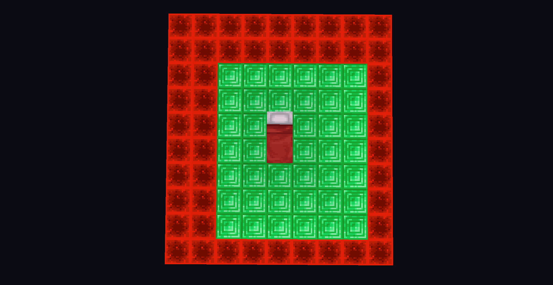 If any zombie moves from the green emerald block to any red redstone block, the player will not be able to sleep and will receive the message "You may not rest now; there are monsters nearby"