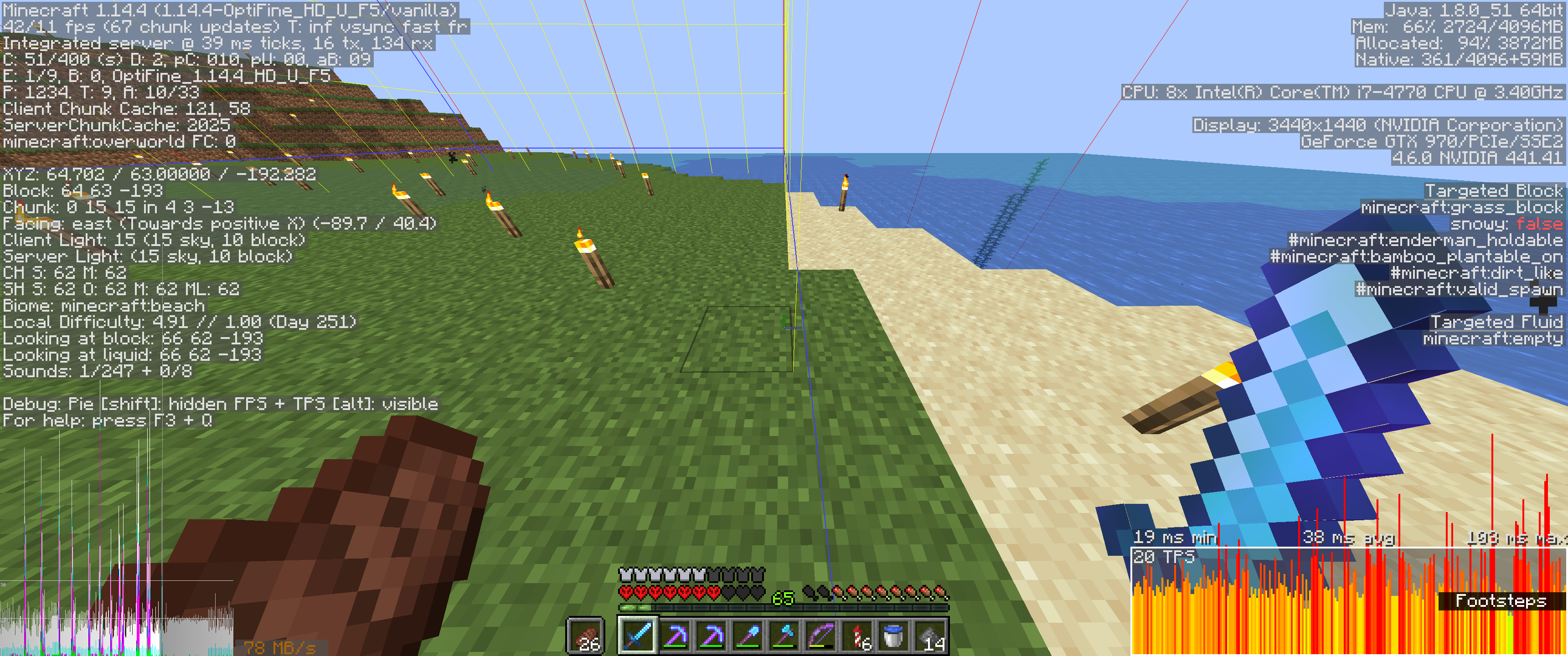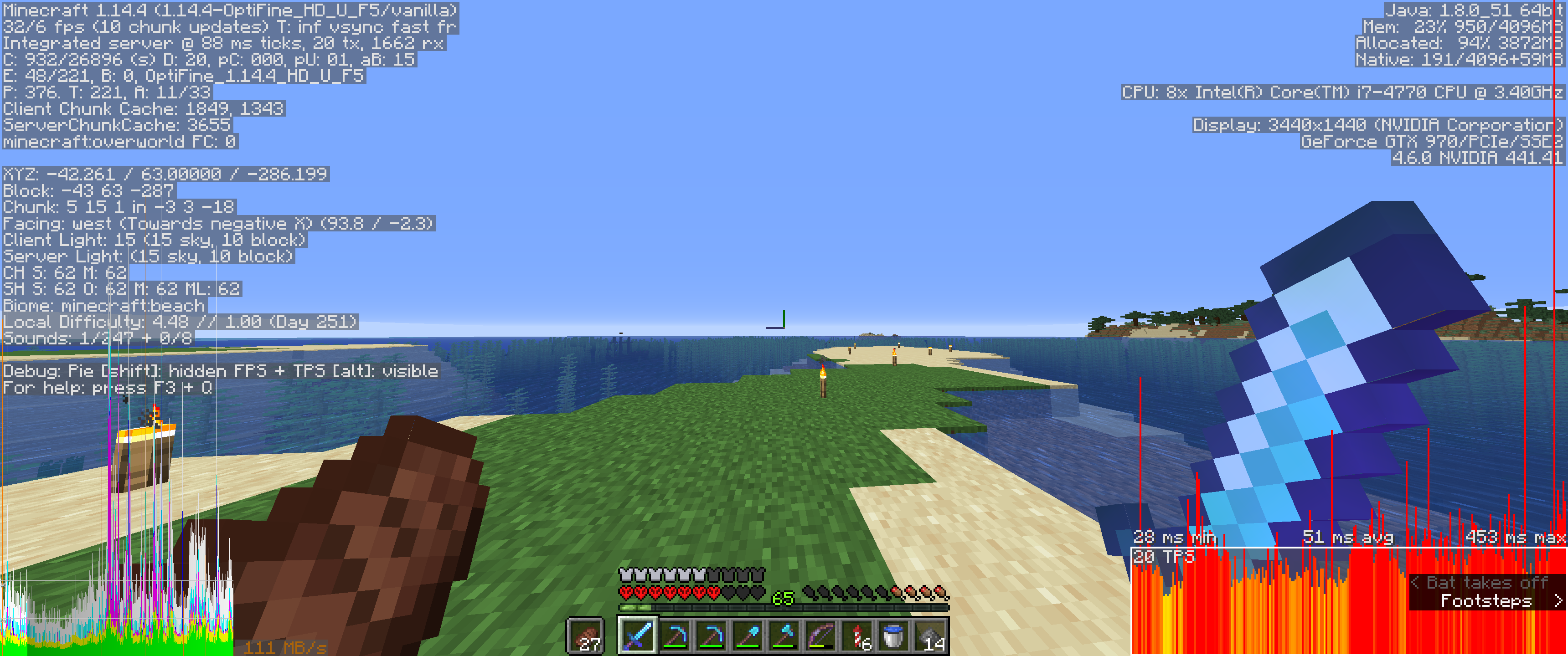 The spikes in the bottom left happen when moving across/loading chunks. Not even sure whats going on in the bottom right, as I couldn't seem to control it in any way.