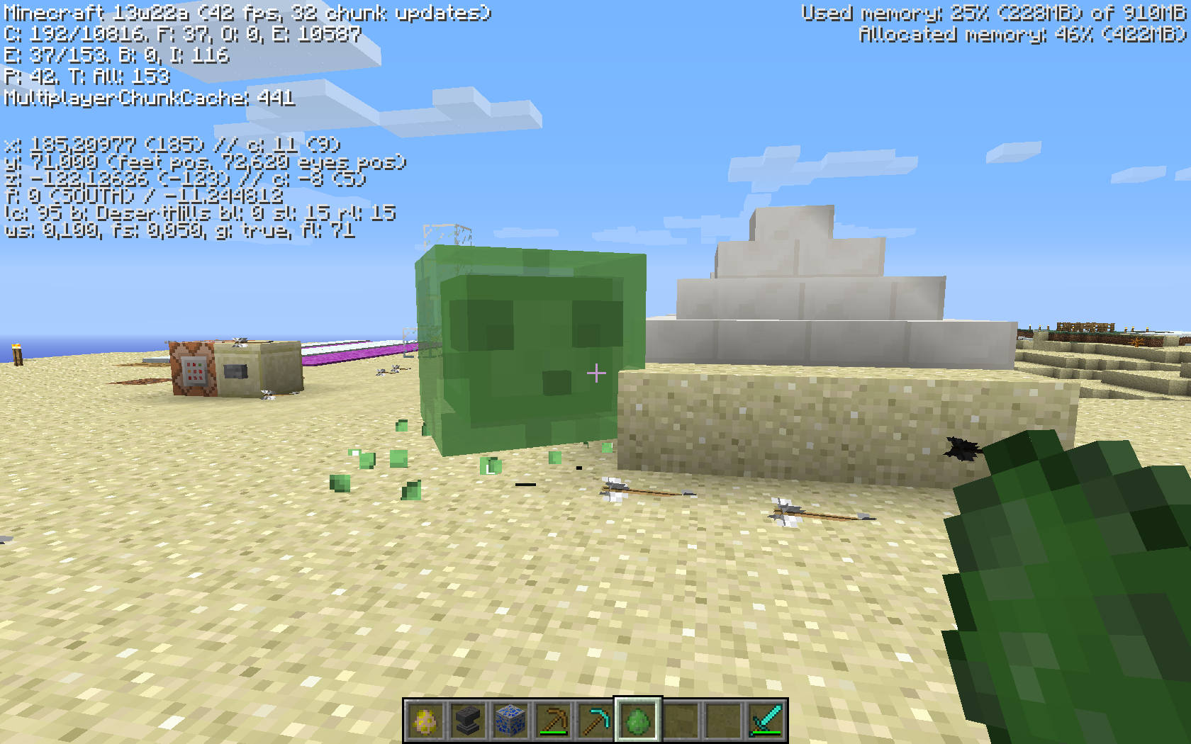 Forced entities: 95 total; [sn['Creeper'/275, l='MpServer', x=304.50, y=64.00, z=291.50], sz['Skeleton'/274, l='MpServer', x=307.50, y=64.00, z=289.50], qy['Chicken'/129, l='MpServer', x=215.50, y=67.00, z=221.50], qw['Bat'/128, l='MpServer', x=227.06, y=23.27, z=196.84], qw['Bat'/131, l='MpServer', x=237.03, y=36.84, z=239.66], td['Zombie'/130, l='MpServer', x=222.50, y=30.00, z=237.50], qw['Bat'/133, l='MpServer', x=220.25, y=35.10, z=241.25], sa['item.item.egg'/132, l='MpServer', x=214.97, y=69.13, z=225.09], sa['item.item.dyePowder.black'/134, l='MpServer', x=208.47, y=61.13, z=284.47], sa['item.tile.sapling.oak'/152, l='MpServer', x=228.56, y=64.13, z=230.59], qw['Bat'/153, l='MpServer', x=229.75, y=31.10, z=241.75], qw['Bat'/154, l='MpServer', x=228.72, y=29.84, z=236.00], qw['Bat'/155, l='MpServer', x=228.38, y=31.06, z=239.94], qw['Bat'/156, l='MpServer', x=236.00, y=19.78, z=279.53], sn['Creeper'/157, l='MpServer', x=235.13, y=64.00, z=261.72], qw['Bat'/158, l='MpServer', x=255.88, y=15.87, z=291.47], qw['Bat'/159, l='MpServer', x=227.25, y=60.10, z=319.34], sz['Skeleton'/147, l='MpServer', x=239.22, y=67.00, z=191.69], td['Zombie'/148, l='MpServer', x=229.91, y=22.00, z=196.91], tb['Spider'/149, l='MpServer', x=224.34, y=22.00, z=196.81], qy['Chicken'/268, l='MpServer', x=308.56, y=70.00, z=188.59], qy['Chicken'/150, l='MpServer', x=229.63, y=66.00, z=195.44], sa['item.item.egg'/151, l='MpServer', x=231.88, y=66.13, z=195.78], qy['Chicken'/174, l='MpServer', x=251.47, y=63.00, z=167.53], qy['Chicken'/163, l='MpServer', x=229.34, y=63.00, z=324.63], qy['Chicken'/161, l='MpServer', x=232.44, y=66.00, z=315.56], qy['Chicken'/160, l='MpServer', x=235.59, y=65.00, z=308.56], qy['Chicken'/166, l='MpServer', x=232.41, y=64.00, z=324.41], qw['Bat'/186, l='MpServer', x=250.44, y=18.74, z=294.81], qy['Chicken'/187, l='MpServer', x=253.59, y=65.00, z=300.41], qw['Bat'/184, l='MpServer', x=249.22, y=34.10, z=235.34], sz['Skeleton'/185, l='MpServer', x=249.94, y=33.00, z=237.13], sa['item.item.egg'/188, l='MpServer', x=252.91, y=65.13, z=299.13], qy['Chicken'/189, l='MpServer', x=255.41, y=63.00, z=323.56], qy['Chicken'/178, l='MpServer', x=255.41, y=69.00, z=184.41], qy['Chicken'/179, l='MpServer', x=248.34, y=69.00, z=187.44], qw['Bat'/176, l='MpServer', x=238.84, y=26.00, z=184.47], qy['Chicken'/177, l='MpServer', x=251.41, y=69.00, z=186.56], bbw['phantomvision'/417, l='MpServer', x=228.82, y=65.62, z=245.23], sa['item.item.egg'/182, l='MpServer', x=246.16, y=69.13, z=187.34], sz['Skeleton'/183, l='MpServer', x=243.91, y=34.00, z=235.53], sa['item.item.egg'/180, l='MpServer', x=254.63, y=69.13, z=183.25], sa['item.item.egg'/181, l='MpServer', x=250.34, y=69.13, z=186.31], td['Zombie'/68, l='MpServer', x=158.50, y=34.00, z=194.50], td['Zombie'/69, l='MpServer', x=158.50, y=34.00, z=195.50], qy['Chicken'/204, l='MpServer', x=265.56, y=66.00, z=265.53], ta['Slime'/70, l='MpServer', x=151.19, y=52.00, z=205.69], qw['Bat'/71, l='MpServer', x=157.53, y=28.10, z=275.25], sn['Creeper'/64, l='MpServer', x=152.50, y=64.00, z=188.50], sa['item.item.egg'/201, l='MpServer', x=264.19, y=67.13, z=205.66], sn['Creeper'/65, l='MpServer', x=151.50, y=18.00, z=204.50], qy['Chicken'/200, l='MpServer', x=263.44, y=68.00, z=203.56], sz['Skeleton'/66, l='MpServer', x=150.50, y=18.00, z=194.50], tb['Spider'/203, l='MpServer', x=261.28, y=66.69, z=256.50], sz['Skeleton'/67, l='MpServer', x=153.50, y=18.00, z=196.50], sn['Creeper'/202, l='MpServer', x=257.53, y=27.00, z=253.97], qy['Chicken'/199, l='MpServer', x=258.44, y=67.00, z=199.53], tb['Spider'/198, l='MpServer', x=269.13, y=68.00, z=187.88], td['Zombie'/85, l='MpServer', x=166.50, y=43.00, z=185.50], qy['Chicken'/221, l='MpServer', x=284.59, y=71.00, z=186.59], sa['item.item.egg'/222, l='MpServer', x=285.94, y=71.13, z=186.63], sn['Creeper'/87, l='MpServer', x=167.50, y=19.00, z=228.50], tb['Spider'/86, l='MpServer', x=163.84, y=34.00, z=194.28], qy['Chicken'/223, l='MpServer', x=277.41, y=66.00, z=227.38], td['Zombie'/89, l='MpServer', x=168.34, y=25.00, z=277.59], qw['Bat'/88, l='MpServer', x=161.47, y=27.10, z=226.47], rk['Squid'/91, l='MpServer', x=172.91, y=57.38, z=298.28], qw['Bat'/90, l='MpServer', x=162.91, y=37.10, z=300.88], sn['Creeper'/102, l='MpServer', x=177.94, y=45.00, z=262.41], qw['Bat'/103, l='MpServer', x=188.63, y=21.46, z=285.09], sn['Creeper'/100, l='MpServer', x=185.50, y=43.00, z=251.50], sz['Skeleton'/101, l='MpServer', x=190.56, y=22.00, z=267.13], sz['Skeleton'/232, l='MpServer', x=284.50, y=73.00, z=309.50], td['Zombie'/111, l='MpServer', x=195.50, y=68.00, z=182.50], qy['Chicken'/230, l='MpServer', x=286.56, y=73.00, z=315.59], qw['Bat'/108, l='MpServer', x=191.69, y=26.71, z=179.00], qy['Chicken'/229, l='MpServer', x=277.47, y=69.00, z=319.63], qy['Chicken'/228, l='MpServer', x=287.38, y=73.00, z=315.53], tb['Spider'/227, l='MpServer', x=283.34, y=67.00, z=268.41], sz['Skeleton'/226, l='MpServer', x=274.50, y=68.00, z=260.50], qy['Chicken'/225, l='MpServer', x=272.97, y=67.00, z=264.97], qw['Bat'/104, l='MpServer', x=178.50, y=30.10, z=298.66], sn['Creeper'/224, l='MpServer', x=286.50, y=27.00, z=245.50], rk['Squid'/118, l='MpServer', x=194.22, y=60.75, z=292.50], rk['Squid'/117, l='MpServer', x=195.13, y=61.00, z=283.97], sz['Skeleton'/116, l='MpServer', x=187.30, y=25.00, z=275.70], sz['Skeleton'/115, l='MpServer', x=194.47, y=28.00, z=262.56], sn['Creeper'/114, l='MpServer', x=198.50, y=26.00, z=271.50], sz['Skeleton'/248, l='MpServer', x=288.50, y=24.00, z=276.50], td['Zombie'/113, l='MpServer', x=197.66, y=23.00, z=221.94], td['Zombie'/112, l='MpServer', x=203.50, y=66.00, z=199.50], tb['Spider'/127, l='MpServer', x=222.63, y=22.00, z=196.63], td['Zombie'/126, l='MpServer', x=211.50, y=66.00, z=185.50], qy['Chicken'/247, l='MpServer', x=294.44, y=65.00, z=197.44], sn['Creeper'/125, l='MpServer', x=227.47, y=27.00, z=170.00]]