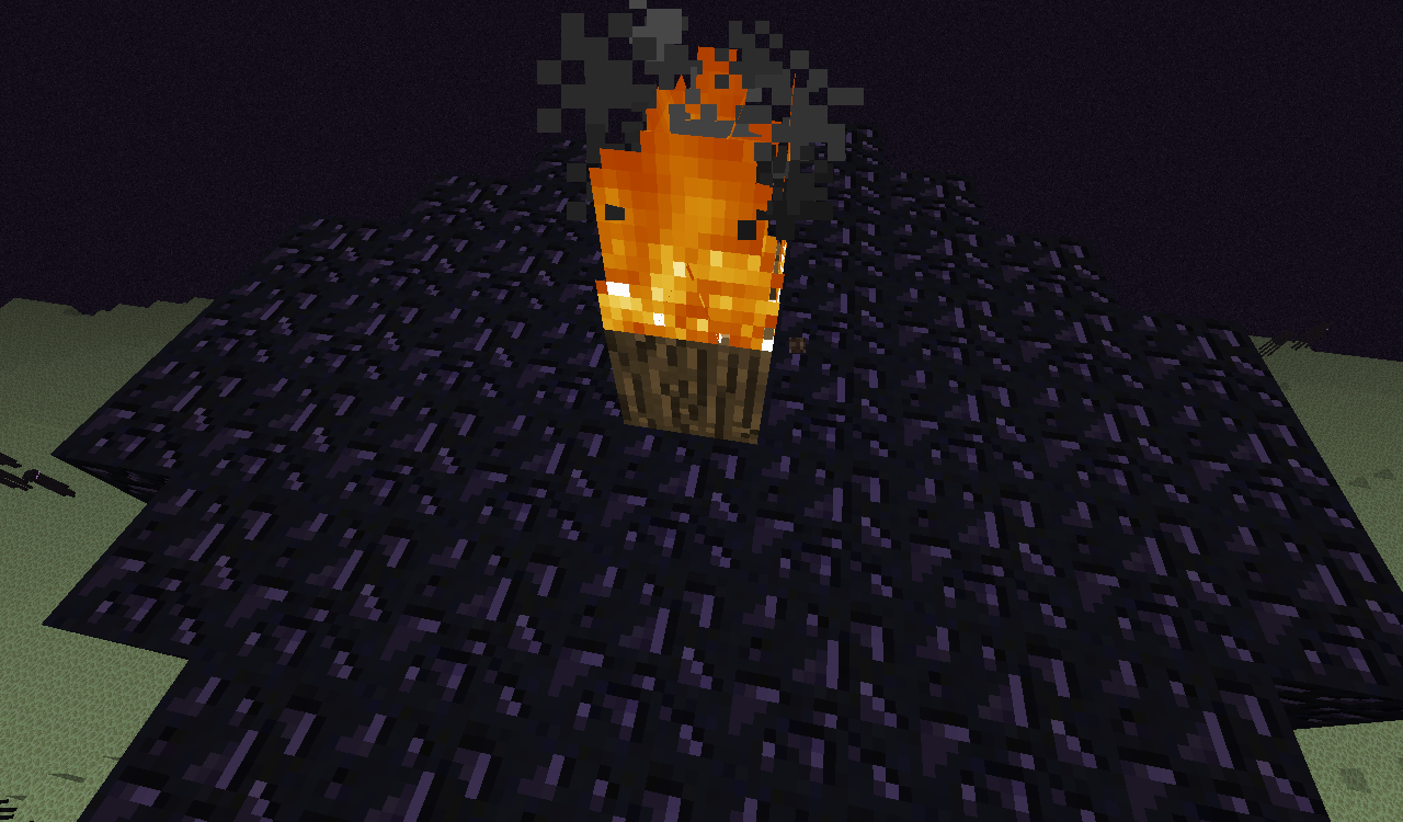 The fire, which appears when you destroy a Ender crystal, still burns when you remove the Bedrock. Then when you place a block, it starts to burn. In addition, blocks of wood do not burn.