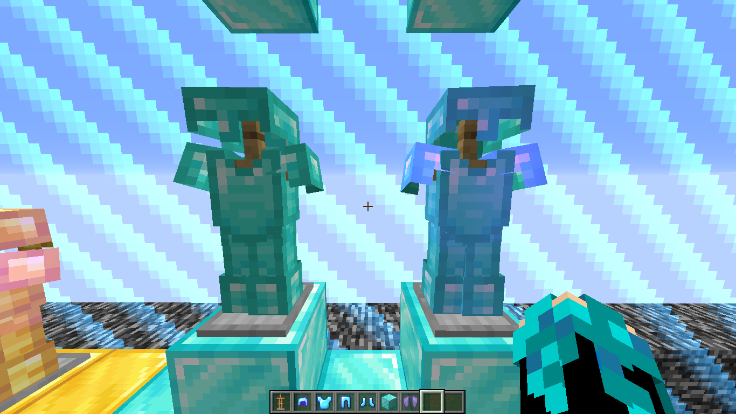 Comparisons of Diamond Armor and Enchanted Diamond Armor.