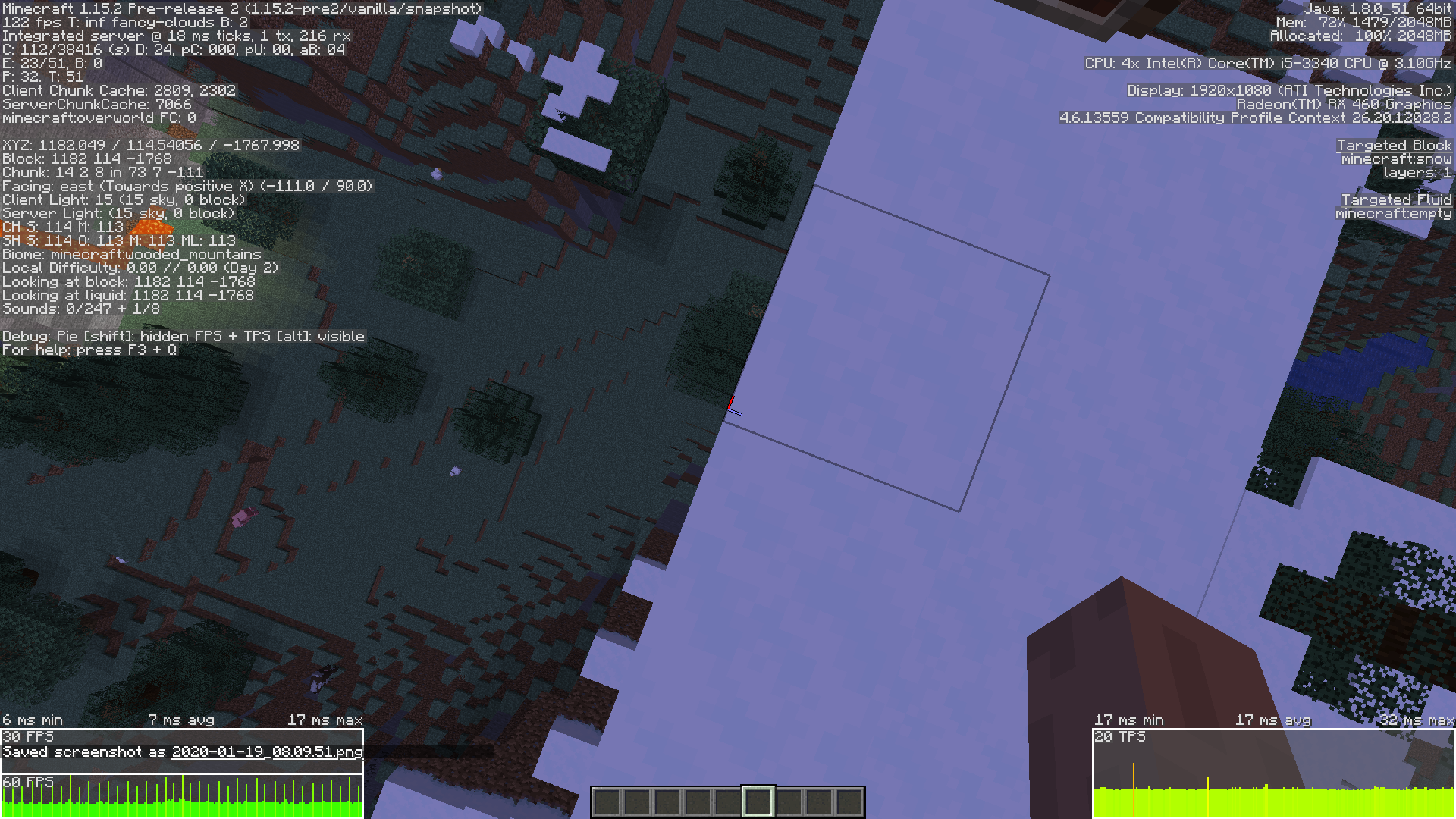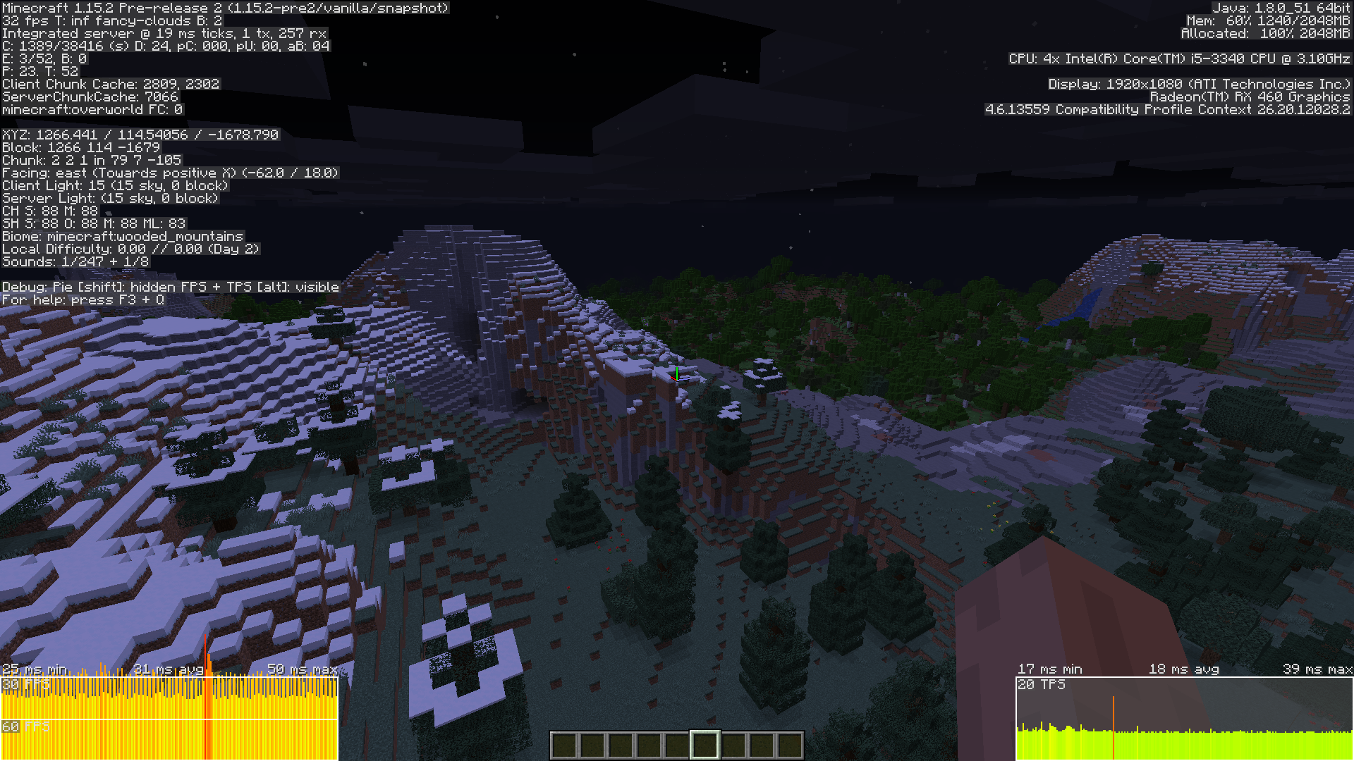 When I opened my inventory, the framerates drop from 120 to 80. When I am not looking straight down or straight up, FPS drops from 30 to 20-25
