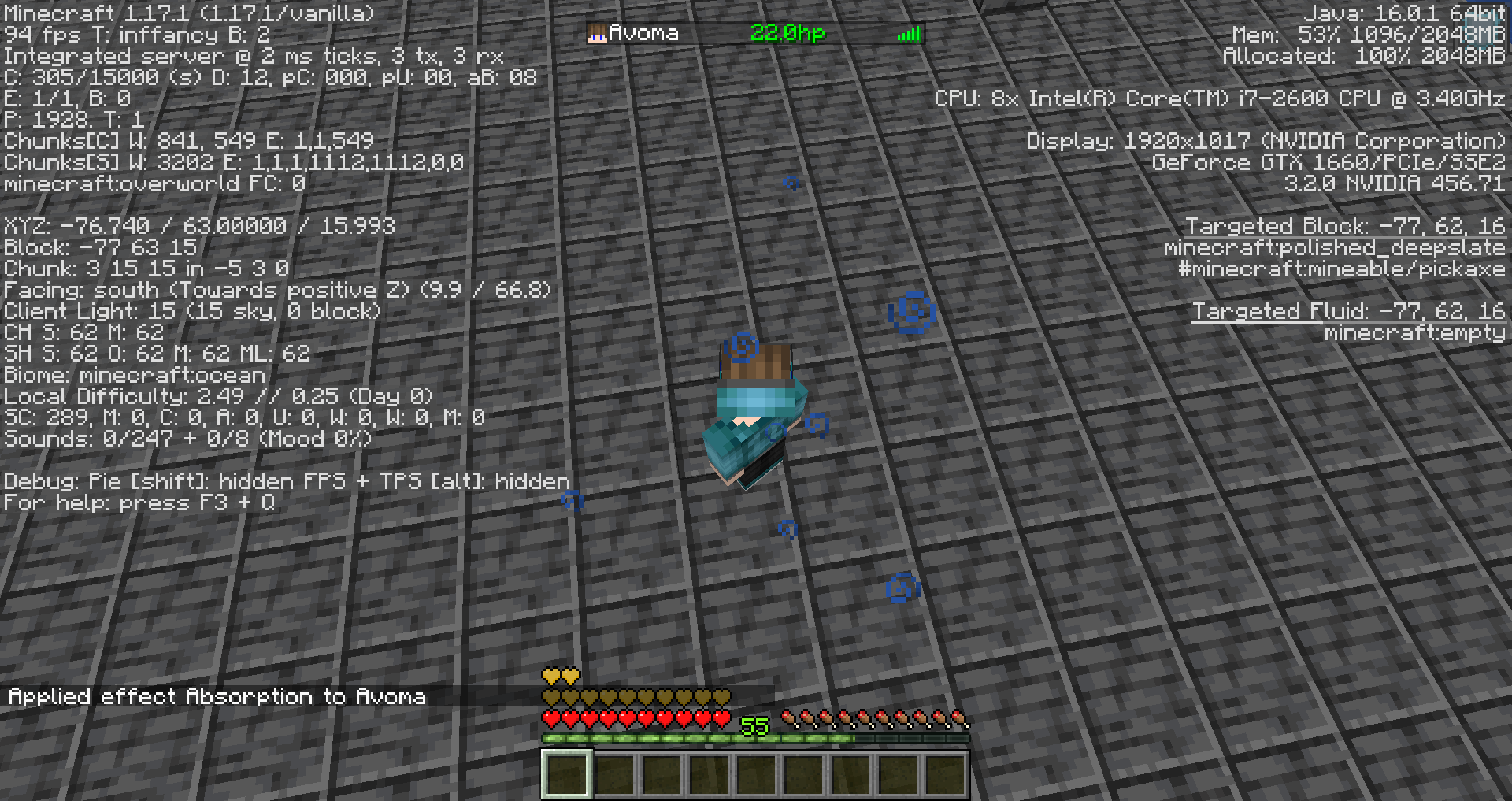 When a player's health goes over 42HP (21 hearts), the tab list displays the player's health in fractional hearts but says it is "hp"; e.g., 22 hearts of health (44HP) is displayed in the tab list as "22hp". This is confusing as "HP" refers to half-hearts of damage/health, not hearts.