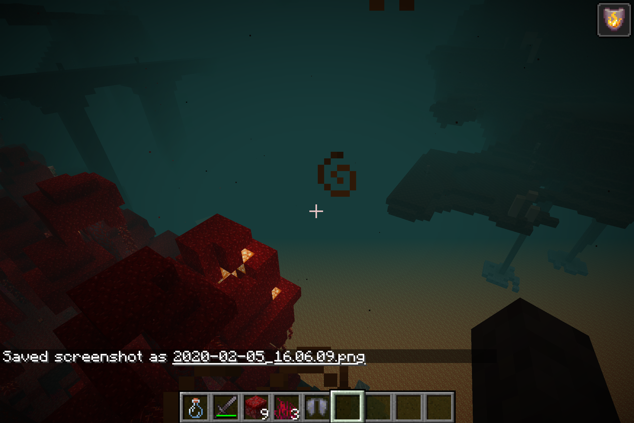 /execute in minecraft:the_nether run tp -170 90 -40Move towards the soul sand and back into the crimson forest; the fog should suddenly change colors.