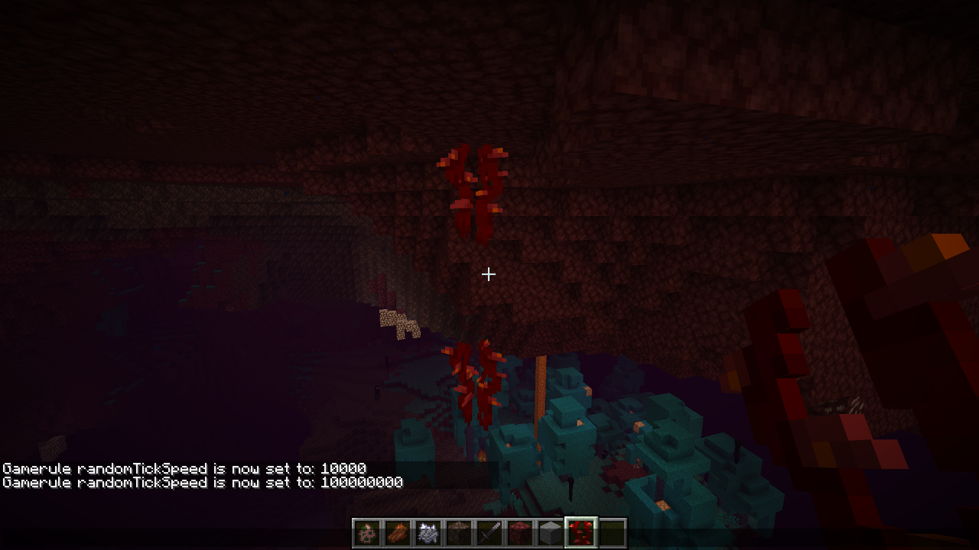 in the latest snapshot when you do /gamerule randomtickspeed 100000 while in the nether it stops time. you cant do any other commands, mobs stop moving, and plants don't grow, but you can place and destroy blocks manually. also when you destroy vines the vines under the original ones dont break.