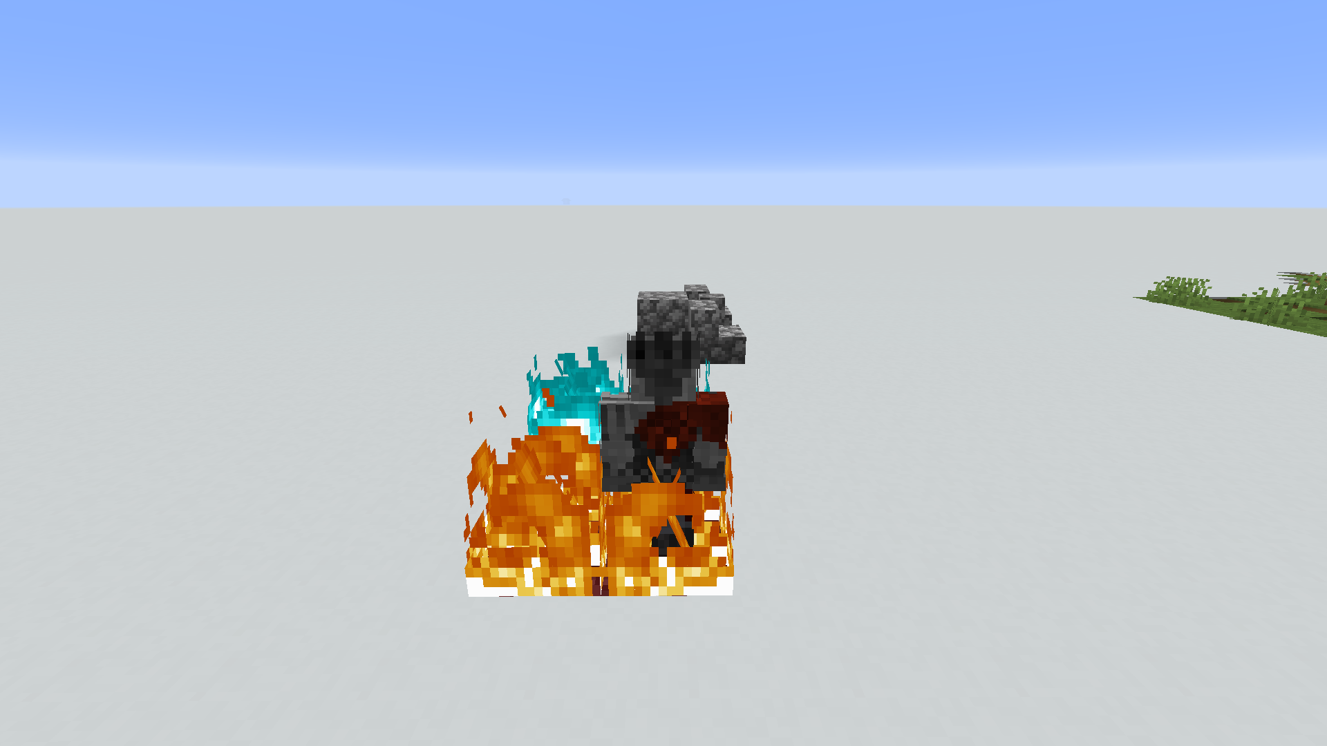 Standing on the edges between two blocks of any types of fire causes burning animation to flash rapidly even if the player is in creative mode.