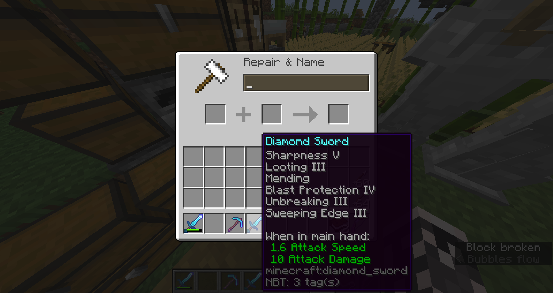 3. combined an unbreaking 3 book with sweeping edge 3. and at this point i had run out of levels so i switched to creative mode and combined the sword with this new book.