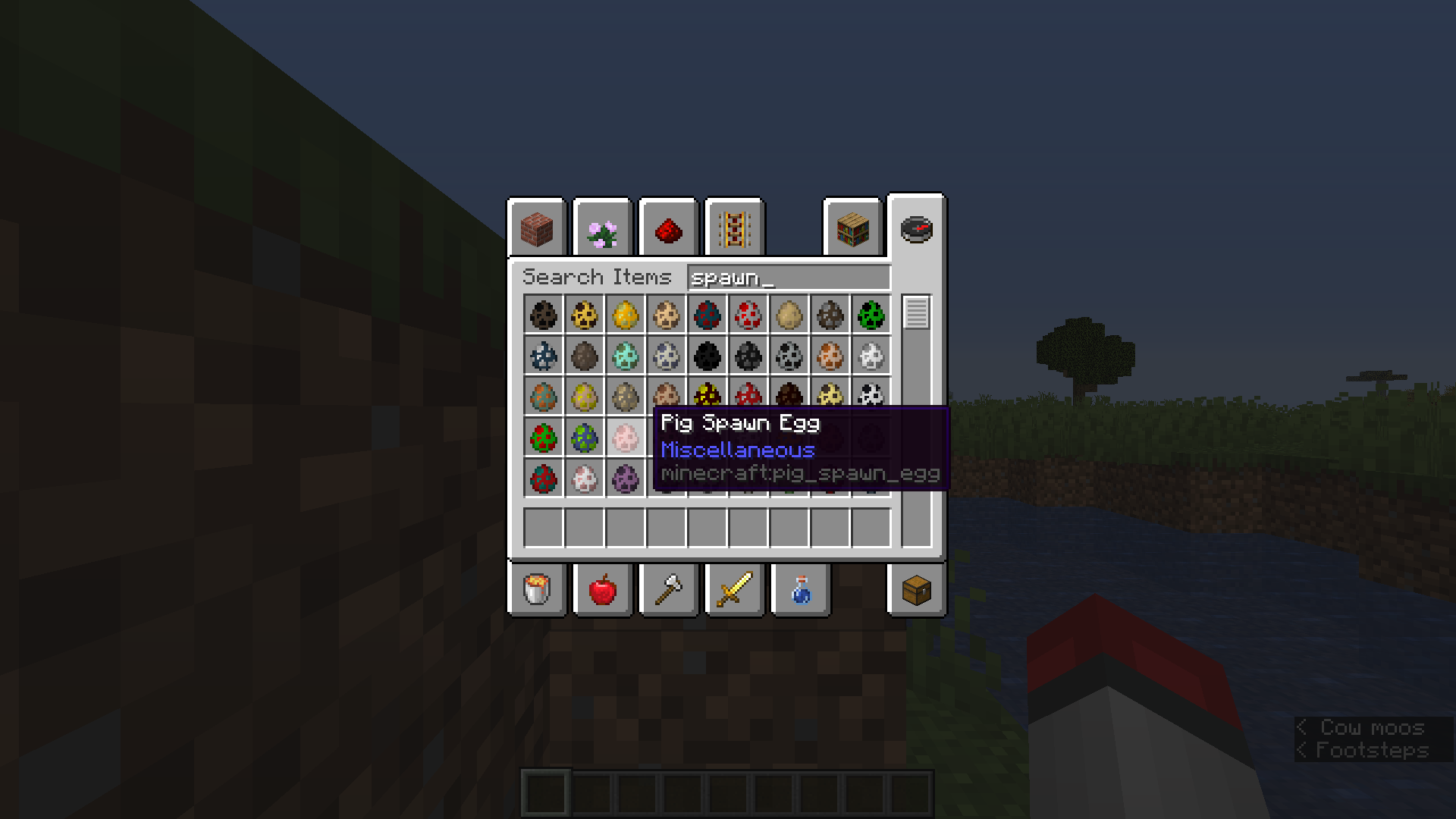 In the creative inventory, spawn eggs are sorted alphabetically. The hoglin's spawn egg is placed in the "P" section after pig rather than before the horse's spawn egg.