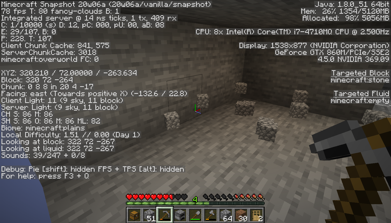 When I first noticed it I could see the silhouette of a spider off in the distance, showing it was an x-ray. Unfortunately it despawned and I waited several minutes for another mob to spawn there with no luck. Slight movements to right or left on the mouse would make it disappear but when moving the character itself I had to move all the way off the block.