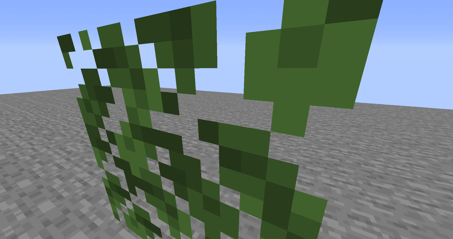 The back faces of leaves blocks do not render. This results in single leaves blocks looking rather odd, as only the faces closest to the player are visible, making it look like the block only has one to three faces total.