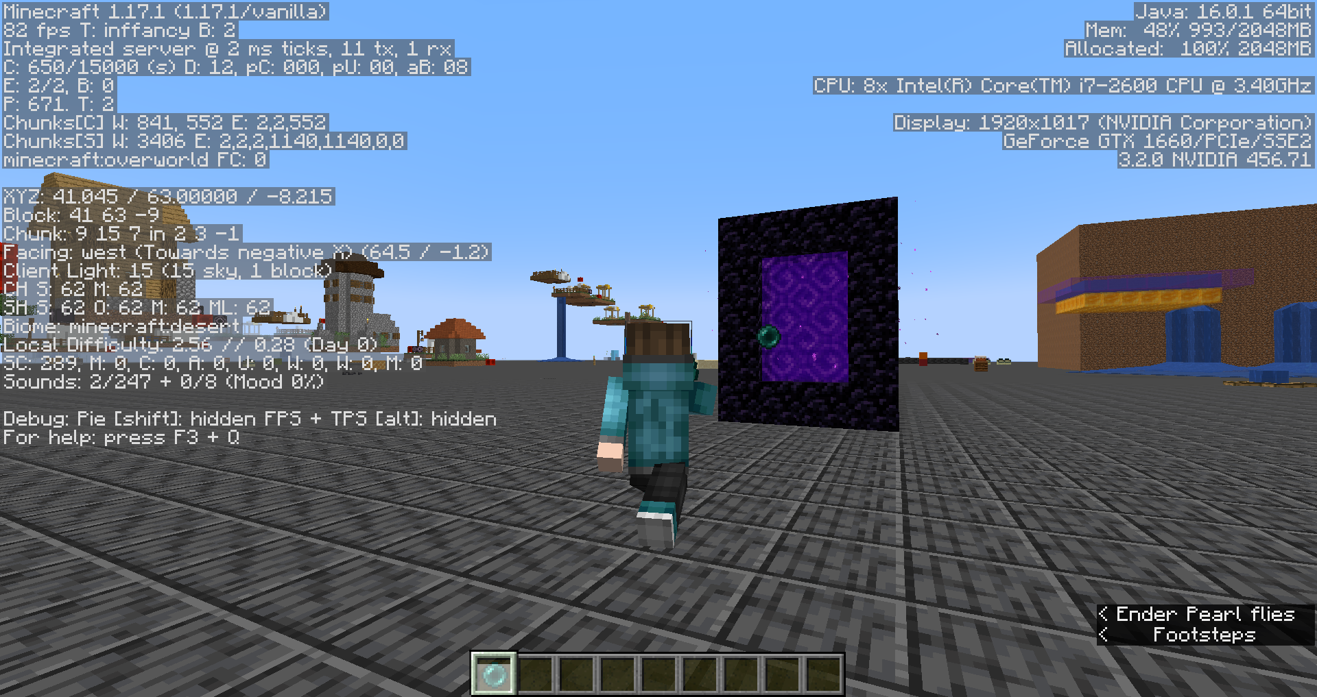 Note: You might see endermite in the target dimension.