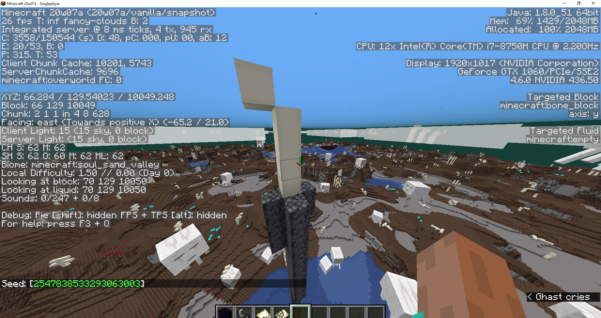 I set the world generation to "buffet" mode and made the biome soulsand valley. I found some bones on top of a basalt pillar.