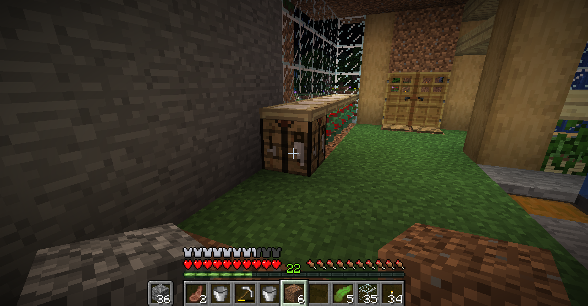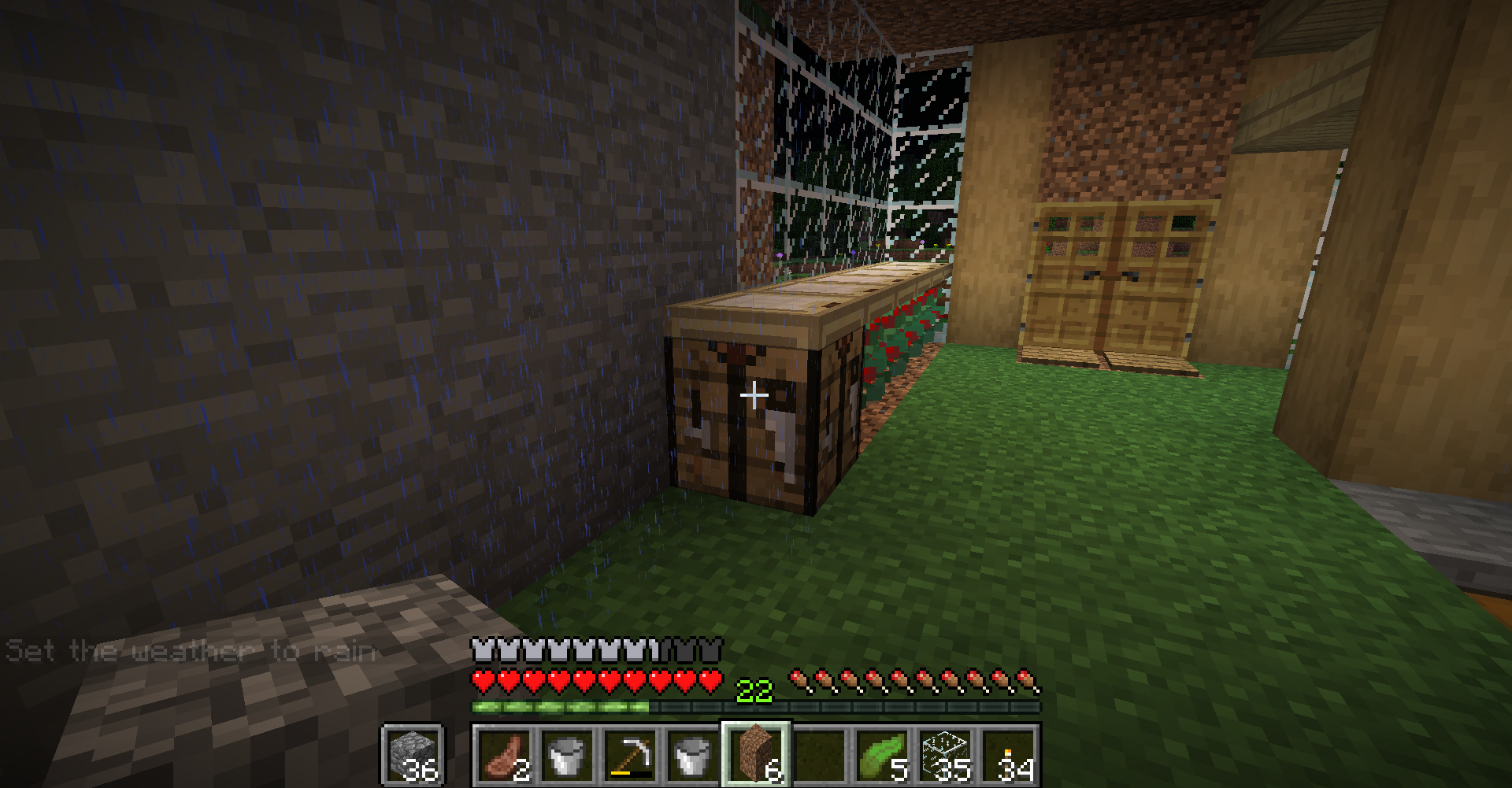 Everytime I pick up a block and it's raining, I can see the rain particules through walls. The screenshots were taken on a server but I have the same problem in singleplayer.