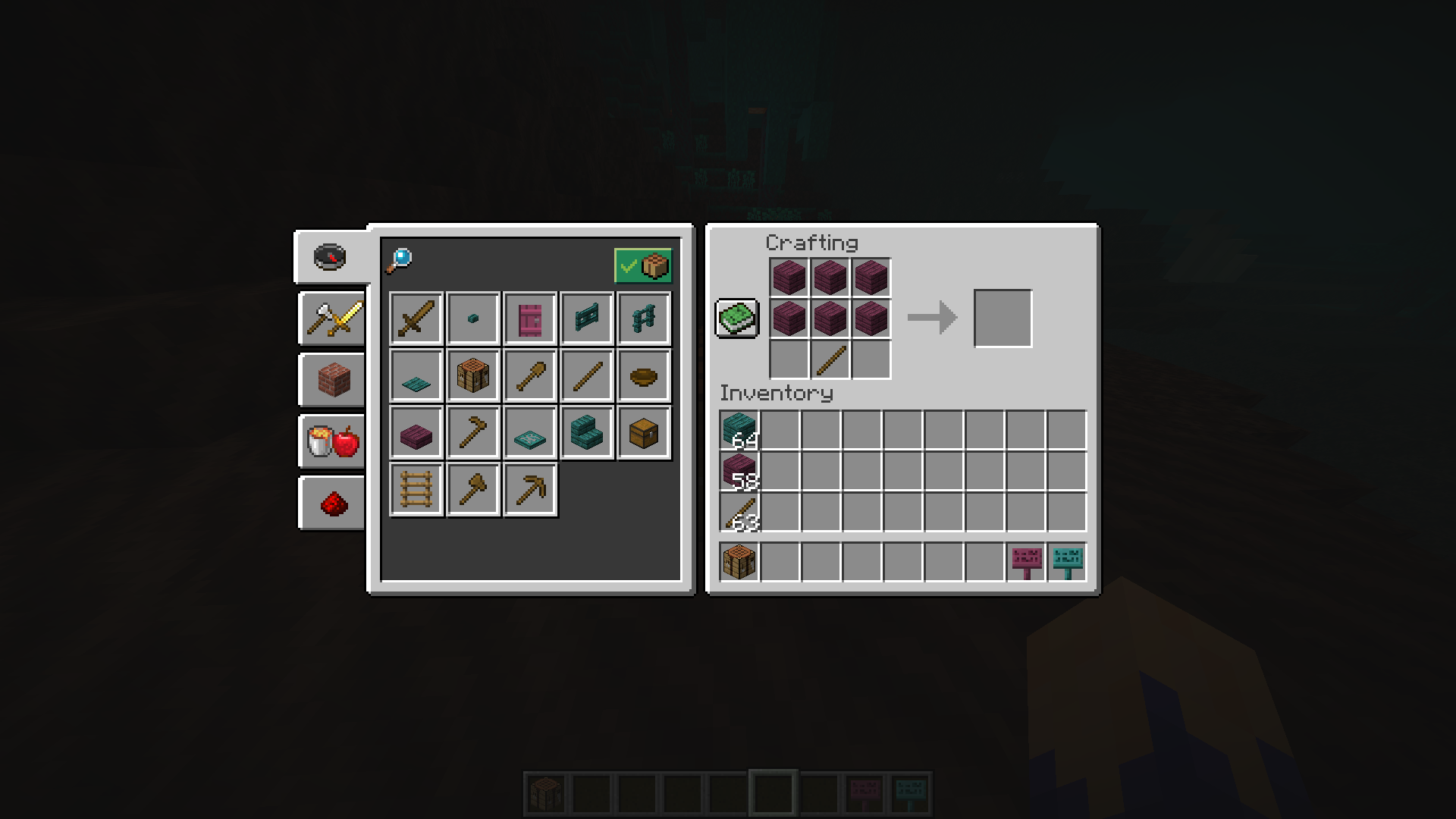 I played the survival and wanted to craft som new stuff from the Nether. But I found this bug. Players cannot craft crimson and warped signs in crafting table. And there isn't a recipe in a crafting book for these.