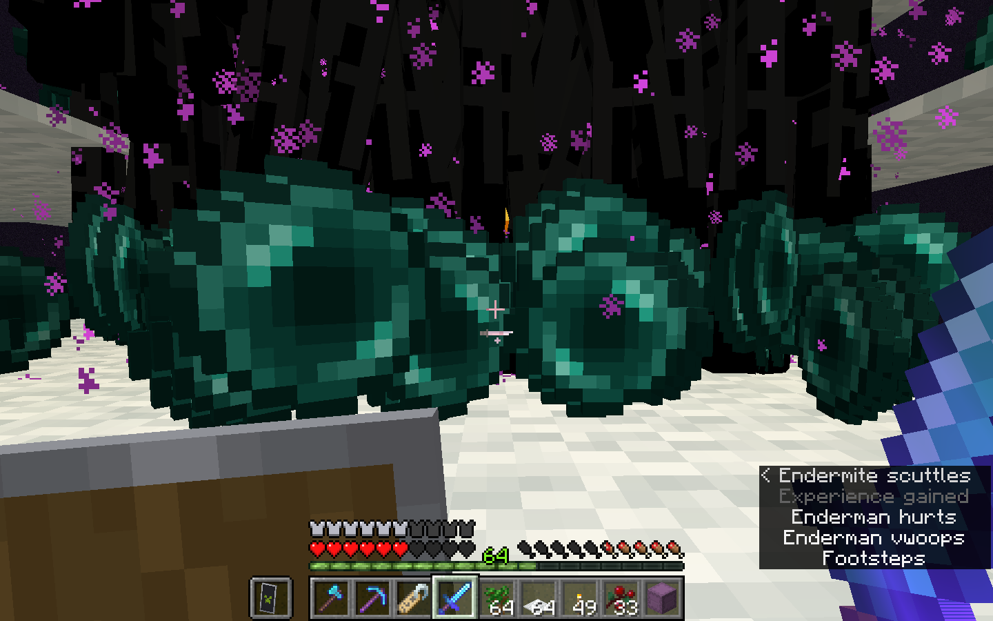 experience points hide what's behind them, even if it's chests or items or mobs, you can see the leaves but you can't see the endermen nor the ender pearls. and in one picture you can see a little amount of endremen legs, but you still can't see the ender pearls - the newest pic-