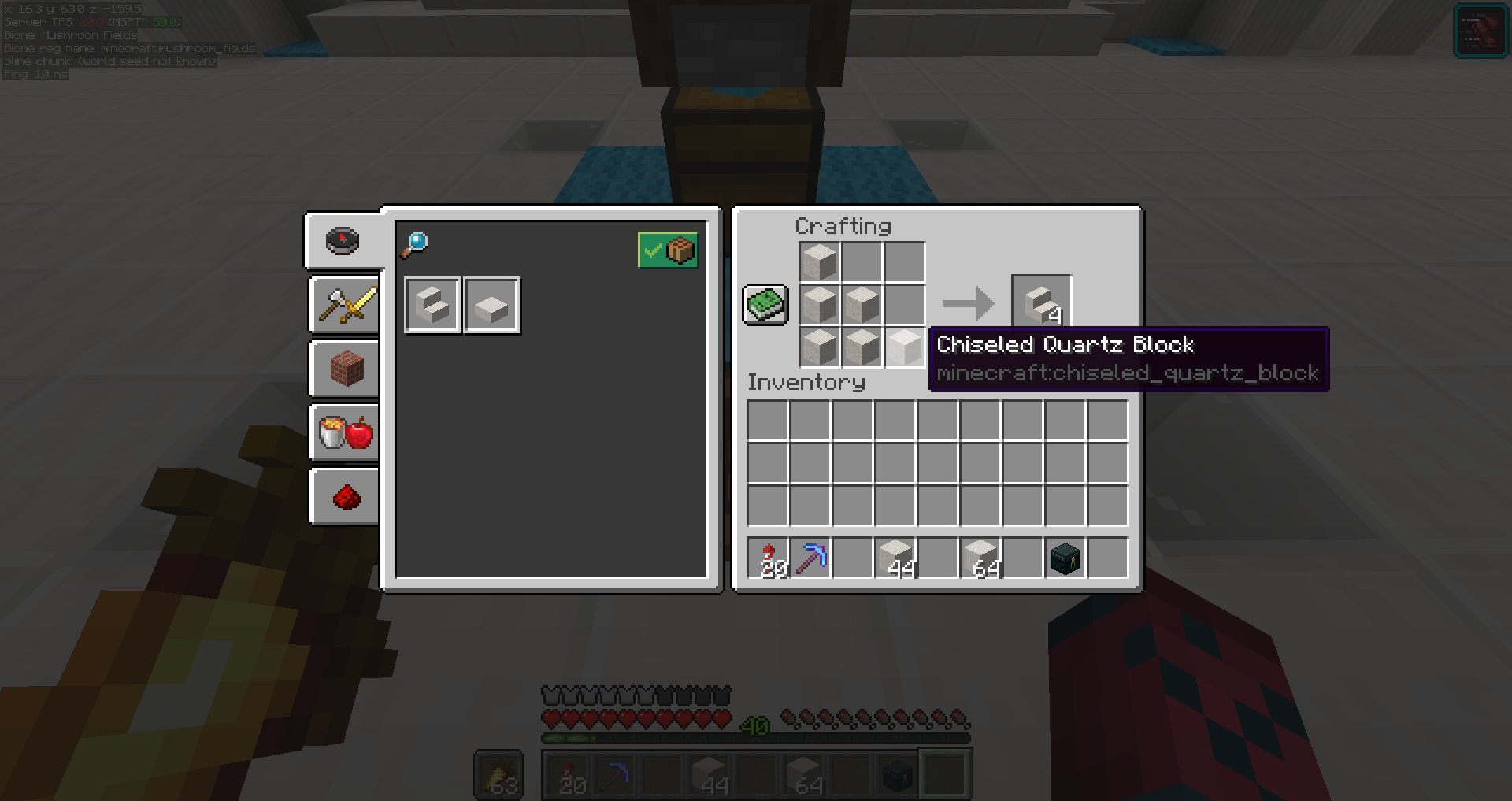 When you use quartz pillars and chiseled quartz blocks on a crafting table you get the crafting recipe from normal quartz stairs and quartz slabs. But if you use the stonecutter you get no option to craft the quartz stairs and quartz slab blocks.