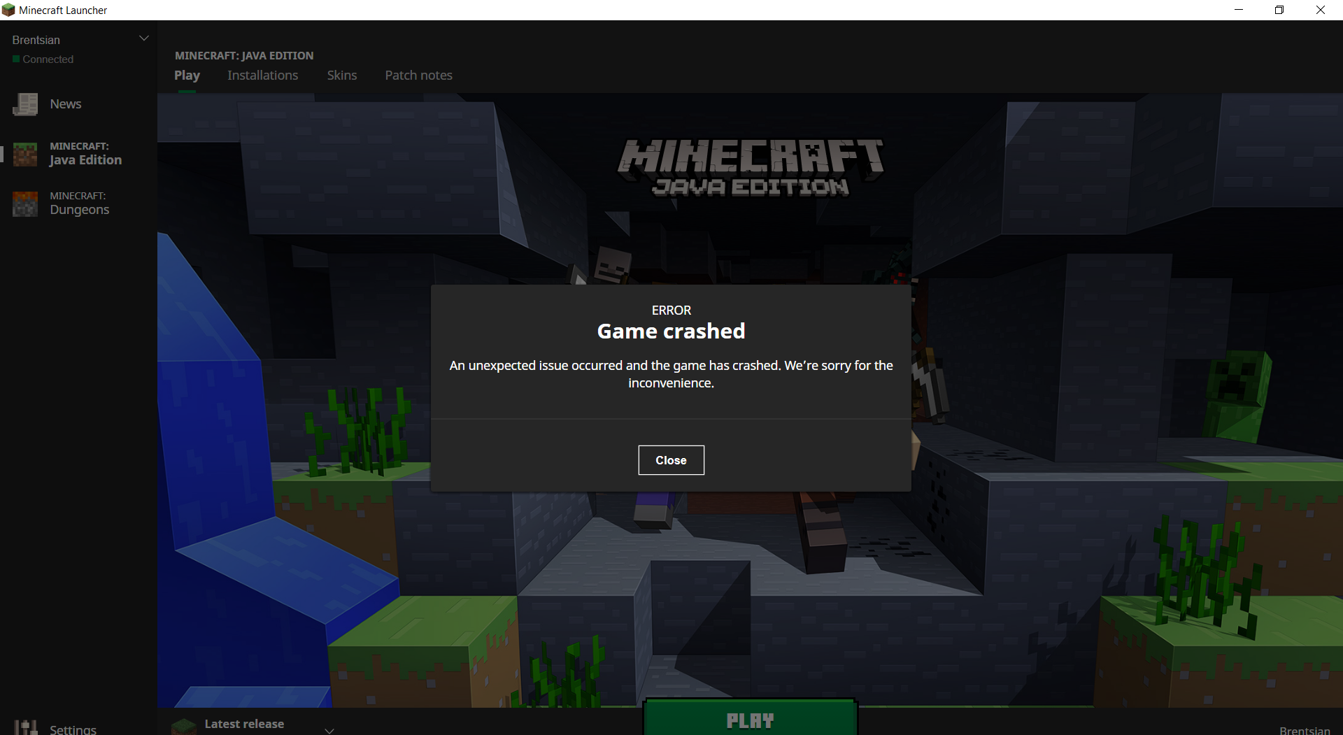 Please attach the crash report found in [minecraft/crash-reports/crash-<DATE>-client.txt|https://minecrafthopper.net/help/guides/finding-minecraft-data-folder/] here. If you cannot find a crash report, please attach the full launcher log found in [minecraft/launcher_log.txt|https://minecrafthopper.net/help/guides/getting-minecraft-logs/].