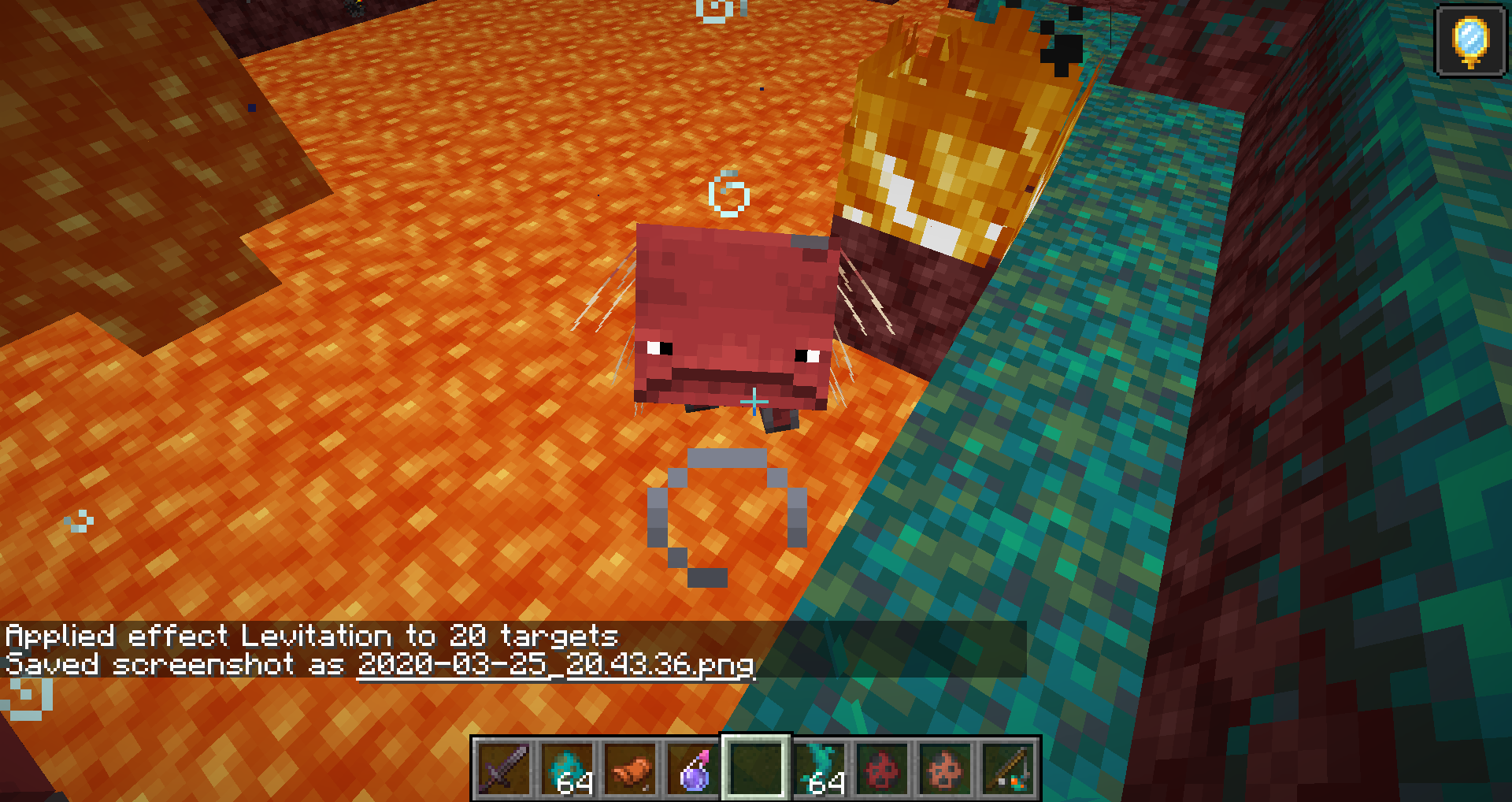 Run the command: /effect give @e[type=strider] levitation 10 10