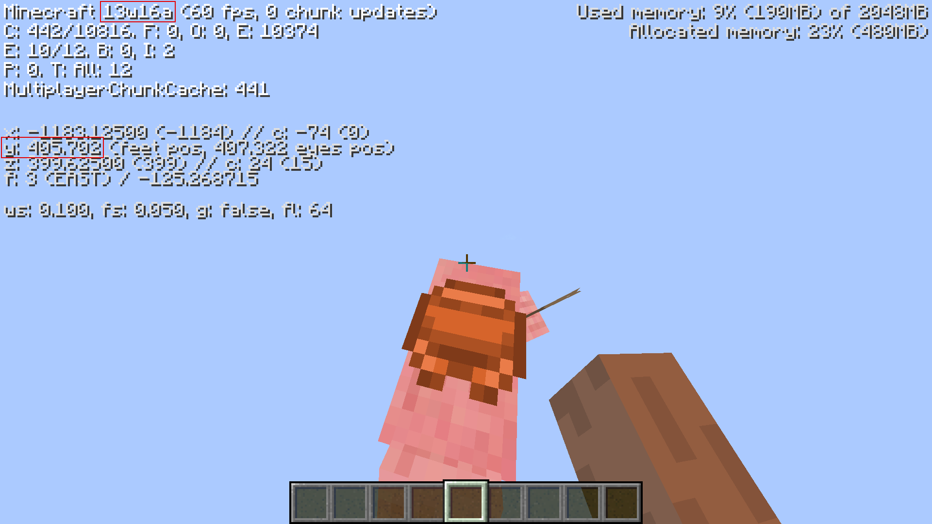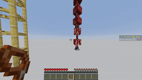 If a stack of entities' height exceeds the maximum length of a lead (such as 5 or more adult Striders), riding the top one while leashed to the bottom will pull the bottom entity into the air. This, in turn, pushes the entire stack, including the player on top, further up. This cycle repeats indefinitely, causing the stack to fly higher and higher into the air.