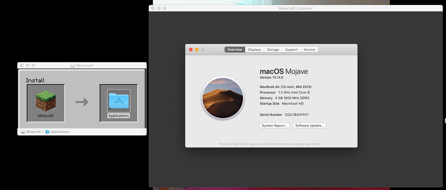 I just downloaded Minecraft Java. When trying to open the launcher it came to a gray/black screen and will not move forward. I looked at all the articles but nothing seems to help. I will include screen shots of the issue, and screen shots of my system so you can see my mac os. I have a mac OSX 10.14.6 If I can't get this working I would like a refund.