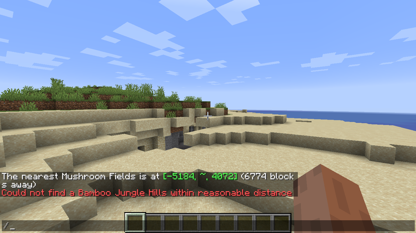 When using the /locatebiome command, biomes that are too far from the player's position will display an error message "Could not find a <biome_name> within reasonable distance."