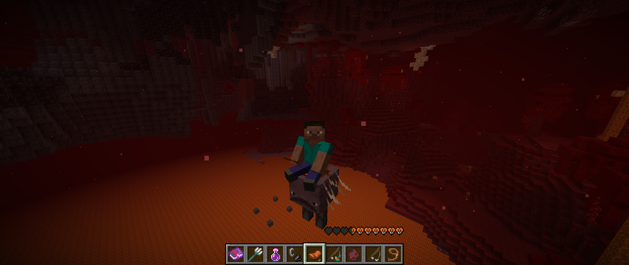 If you quickly mount and dismount a strider the strider then go onto a differnt strider. will float/fly.After further testing this seems to completely remove their gravity allowing you to lift them up even higher using a fishing rod or lead. nothing seems to cancel this state including damage, or riding it, or putting it back in the lava. putting it through the portal works but will nearly immediately despawn. The method is not consistent but i have gotten it 6 times on different striders and seems to require you flying in creative mode.