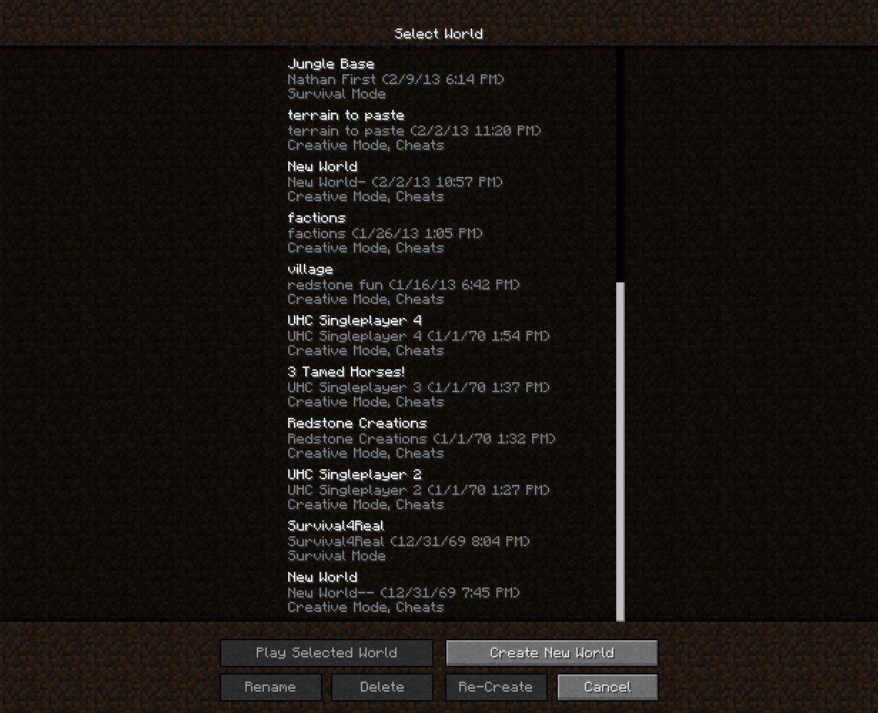 The last played singleplayer world, after quitting, changes its last opened date to 1/1/70 even when my system clock was correct.