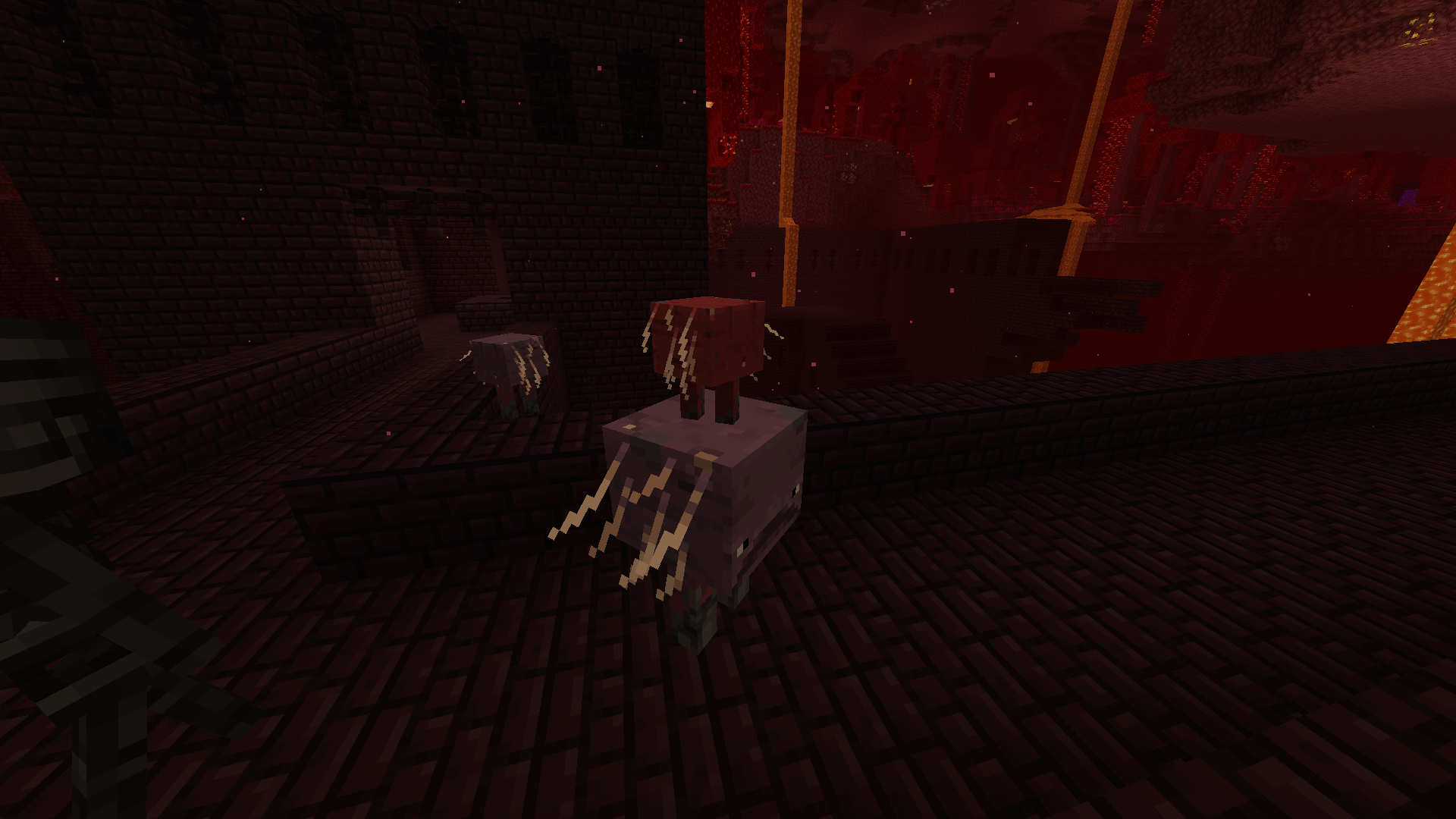 1. Use a strider spawn egg to spawn striders on land until you get one with a baby on its head