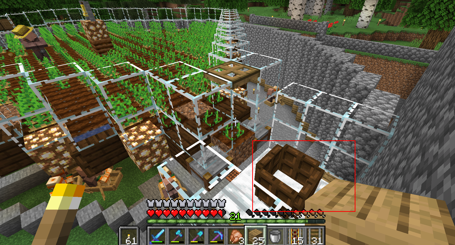 Now those villagers stayed for a day or 2 max and upon coming back to my base earlier I discovered my breeding villagers had disappeared again. but the one farming was still there.