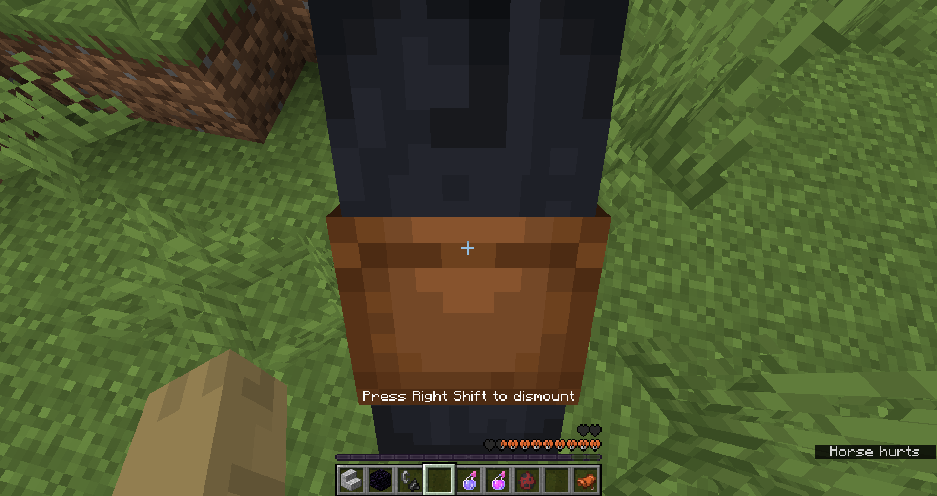 When players are affected by one of these status effects, the health bar shows an accompanying visual effect. However, said visual effect does not apply to an animal which is being ridden, despite their health bar being visible.
