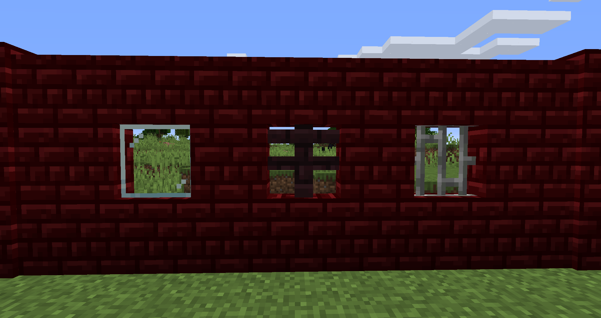 Fences do not connect to walls despite iron bars and glass panes connecting.