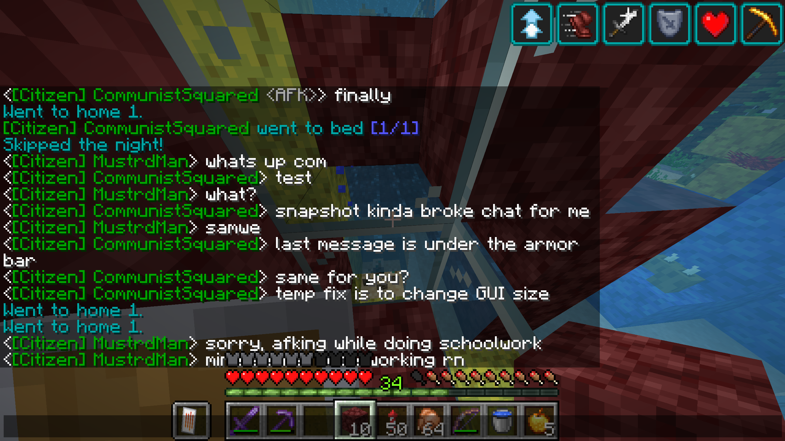 Armor bar overlays player chat. Temporary fix is to make the GUI smaller so that the armor bar doesn't cover player chat.