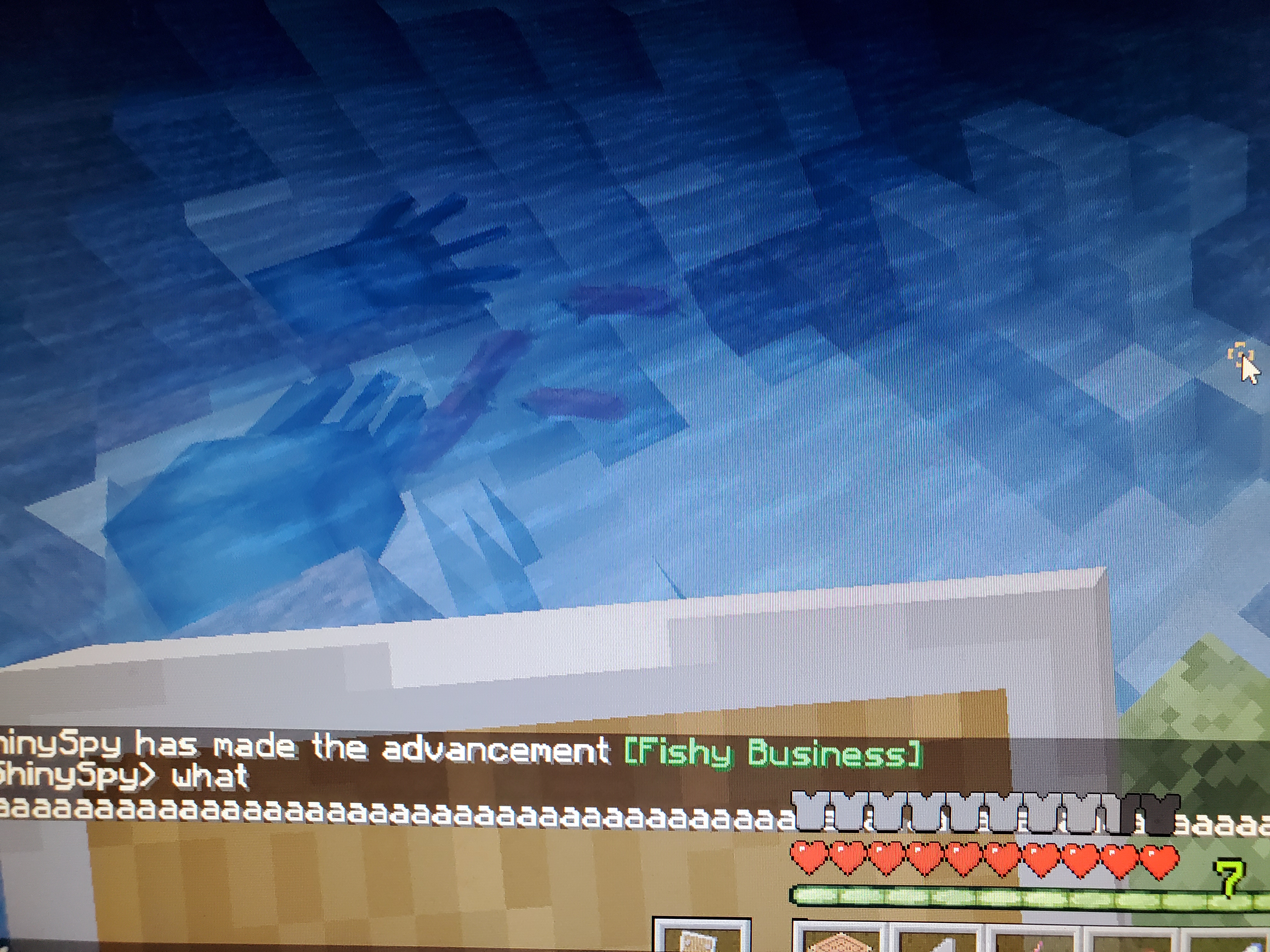 I first saw this when I loaded a world from 20w16a to 20w17a and saw this after I got an achievement. I tested it with player text too and it did the same thing. After seeing this I created a new world in creative, got armor, and went into survival, and it still did the same thing. This is in single player. And it does the same thing even if you have a texture pack.