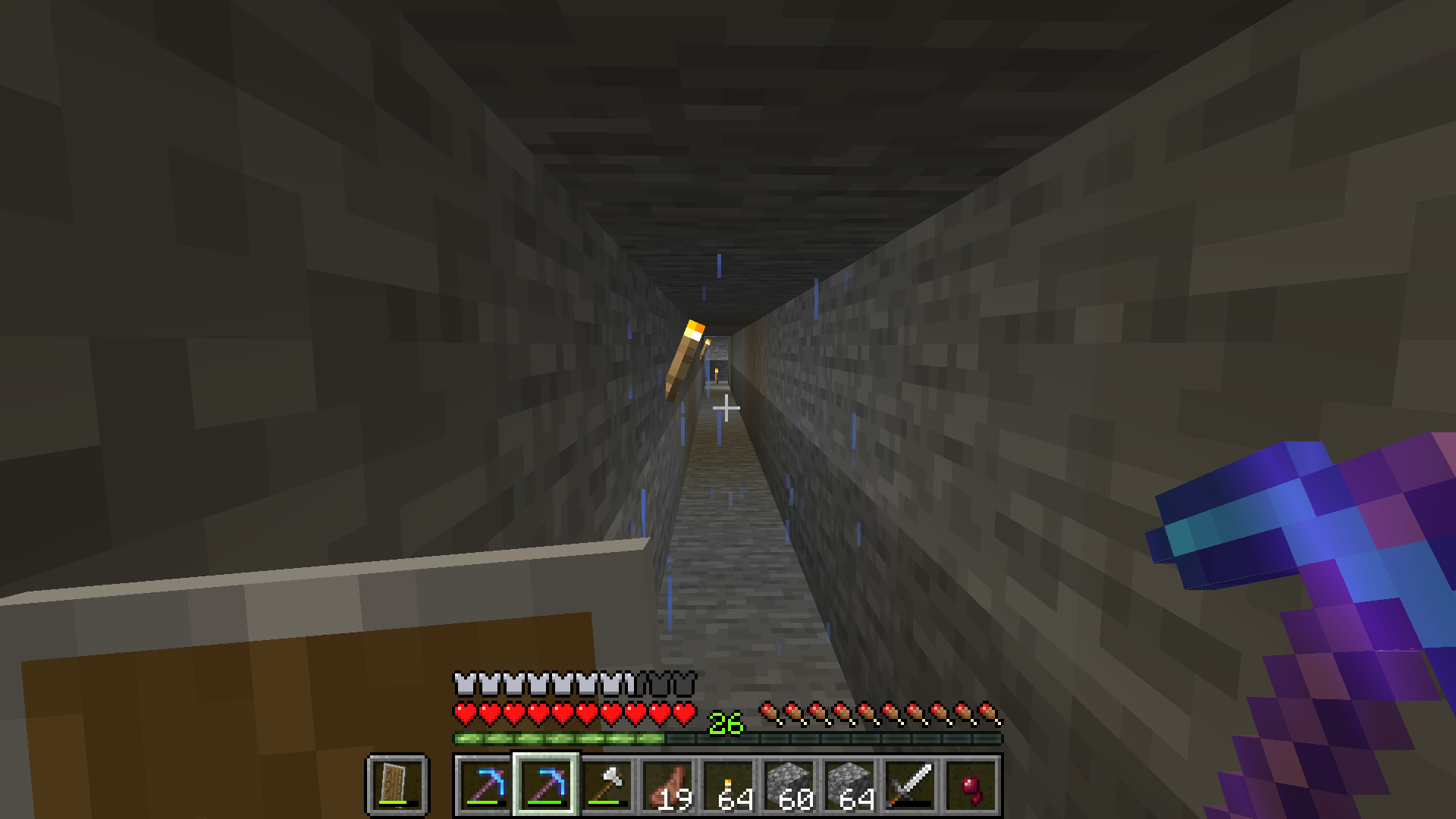 When going underground during thunderstorms during that period the rain particles travel through blocks and go all the way down to bedrock level.