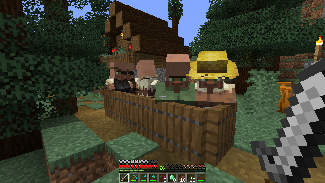 While in a Taiga Village all the villagers after a few days got stuck in the box things around the village.