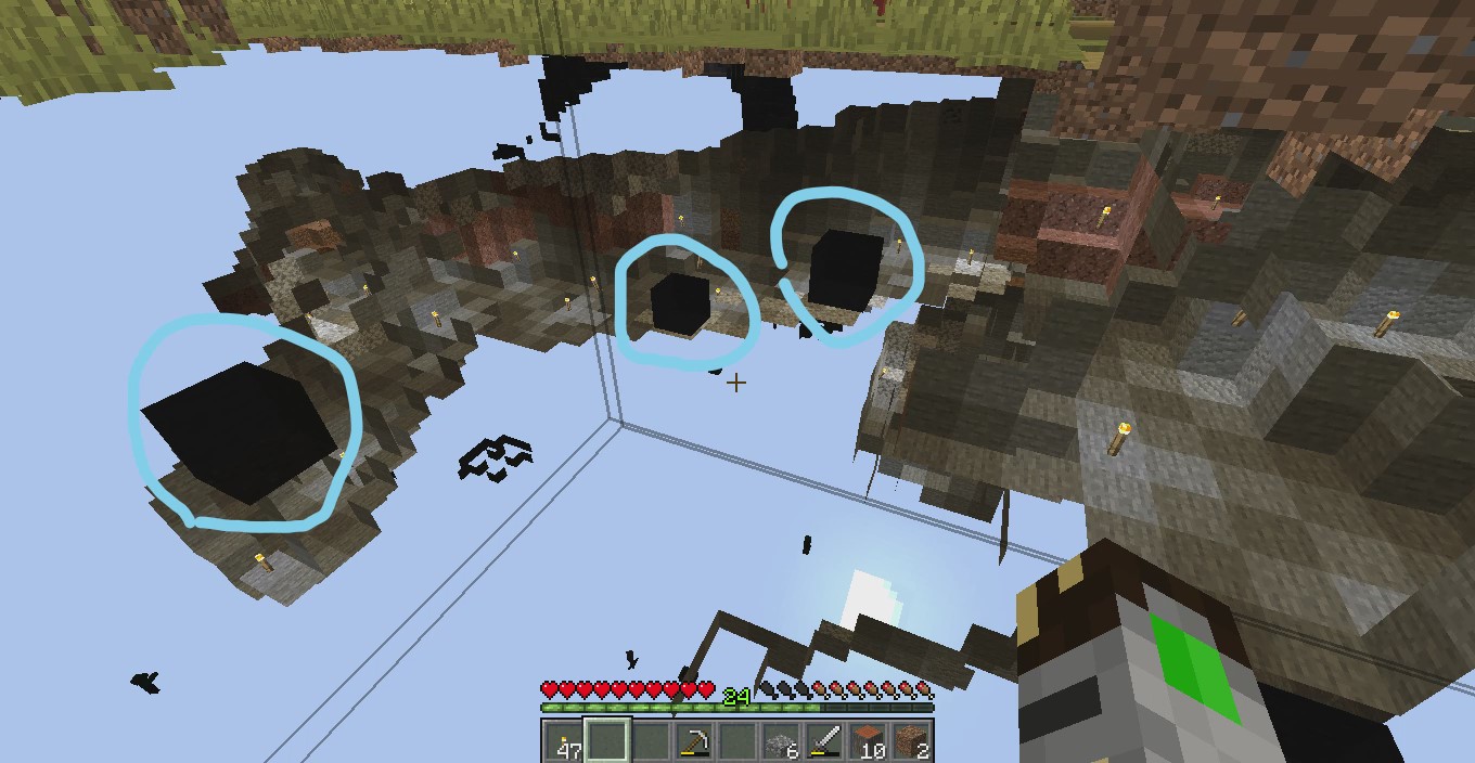 in a village that i like and i set my house next to, i could hear the cave ambiance. i spent two day lighting up the caves and ravines. i finally looked up how to x-ray [sorry] and found [1 by 1 blocks] had spawned under the ground causing the ambiance to go off.