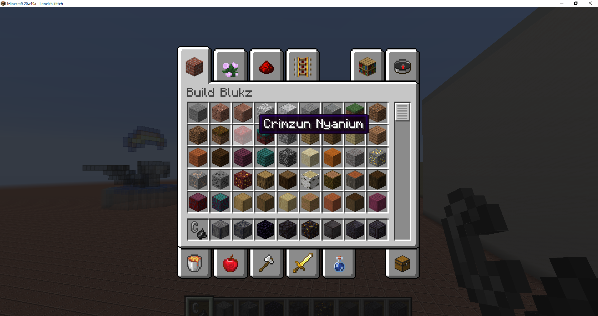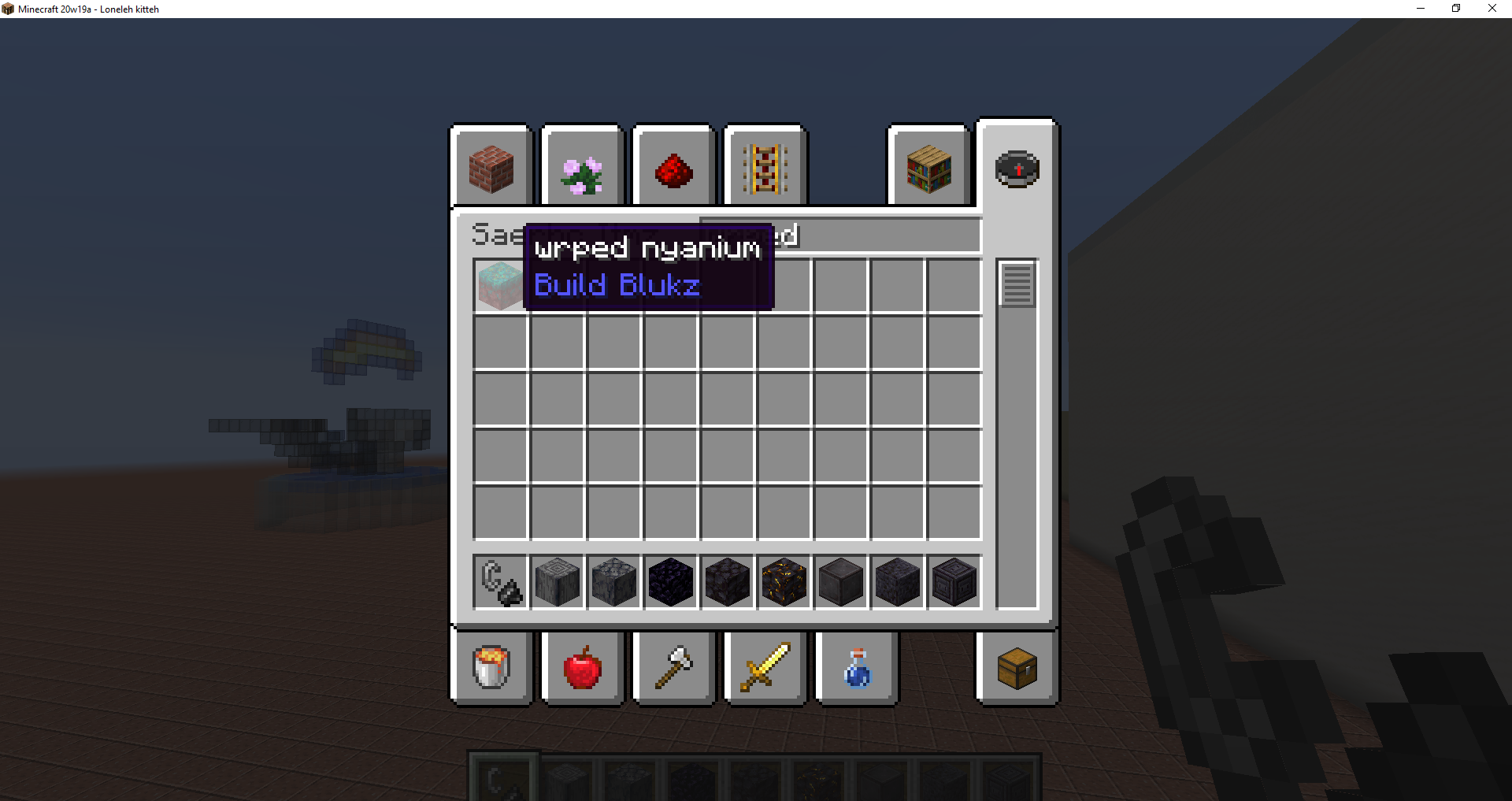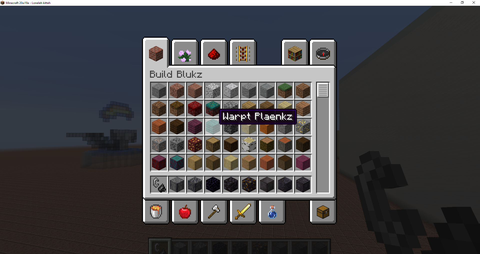 I was using the lolcatz language translation and the "wrped nyanium" (warped nylium) is not capitalized like the other "warpt" (warped) or "crimzun" (crimson) blocks. Also, wrped nyanium isnt Warpt Nyanium which makes it inconsistant with other warpt blocks. There are also inconsistancies with warpd stairs and crimzn stairs.