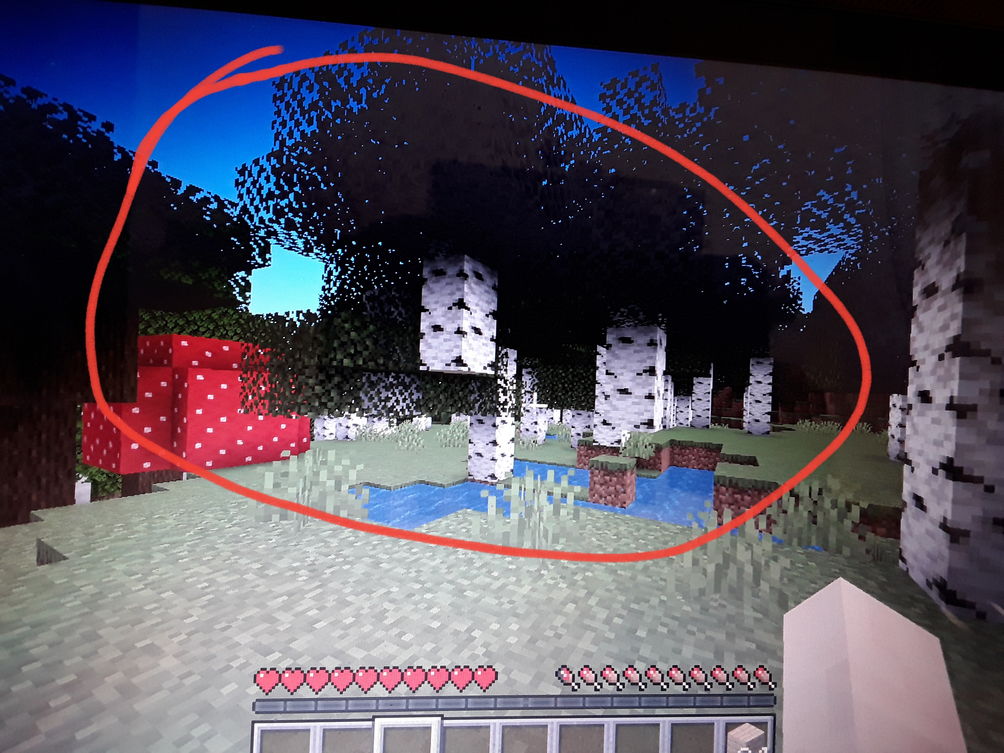 I found some birch trees floating above a pond and some of the trees had no logs