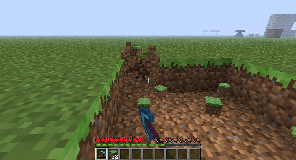 When you enchant a diamond pickaxe and you put in an Anvil with another enchanted diamond pickaxe you can break block of dirt with grass on it, and it drops a block of dirt with grass instead a dirt block.