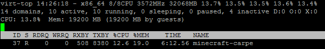 Information from "virt-top" as seen from the host. The subject guest is shown.