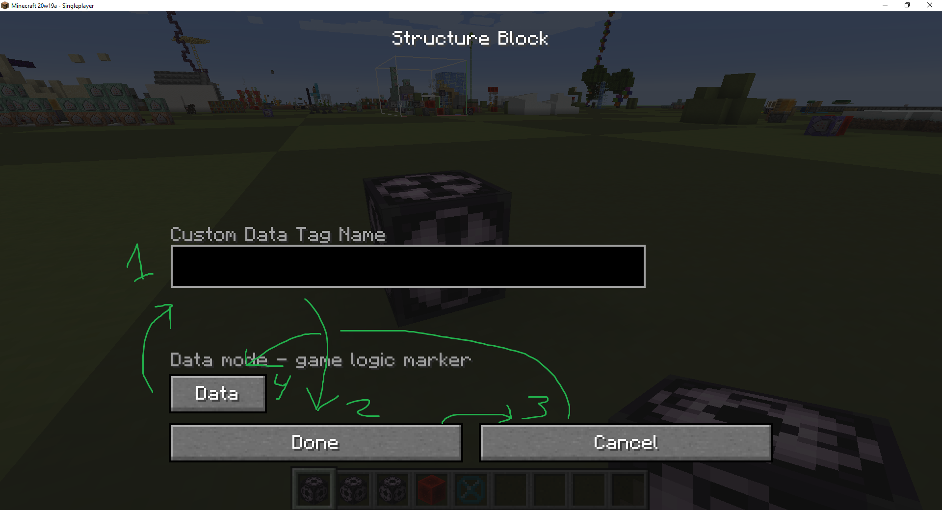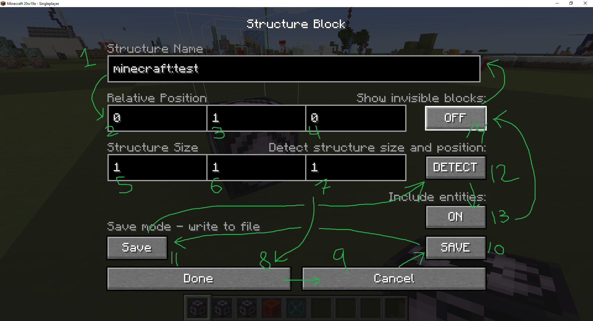 Using the tab key to cycle through buttons and text fields on structure blocks selects these UI elements in a highly confusing order. This affects every mode of structure blocks.