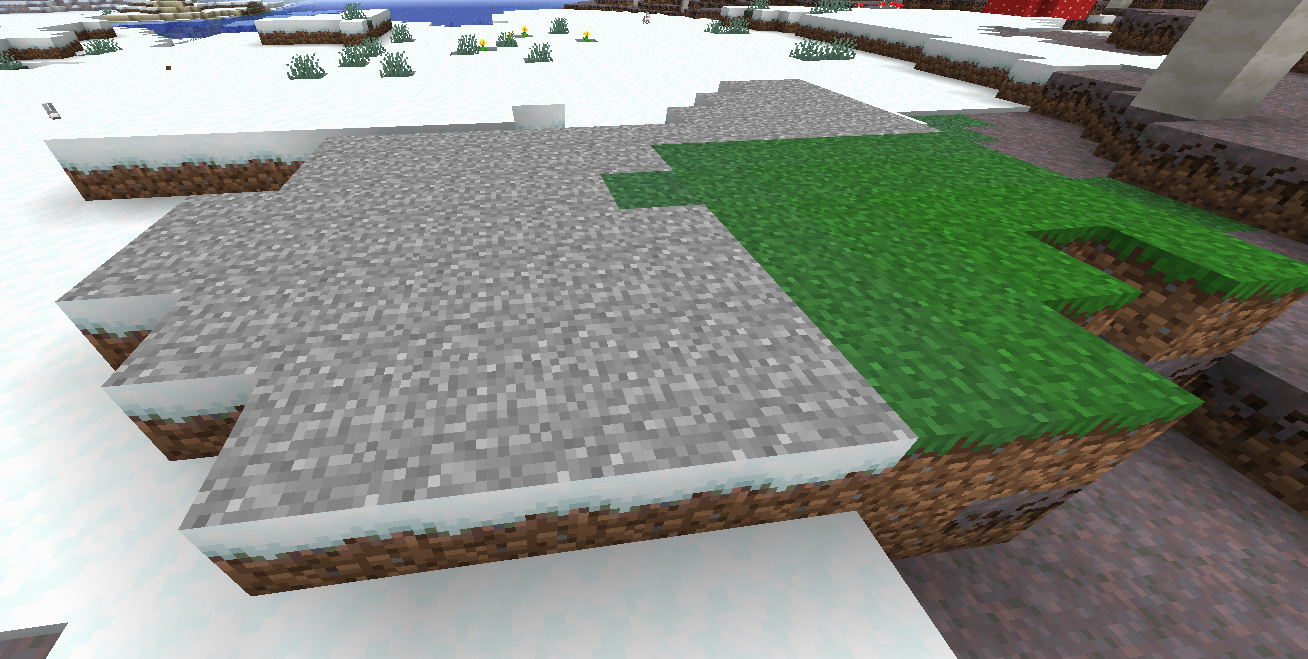 If you put it on a layer of snow that has one layer, the grass block will turn gray on top. This bug works everywhere. You just need to put a layer of snow and a block of grass on top.