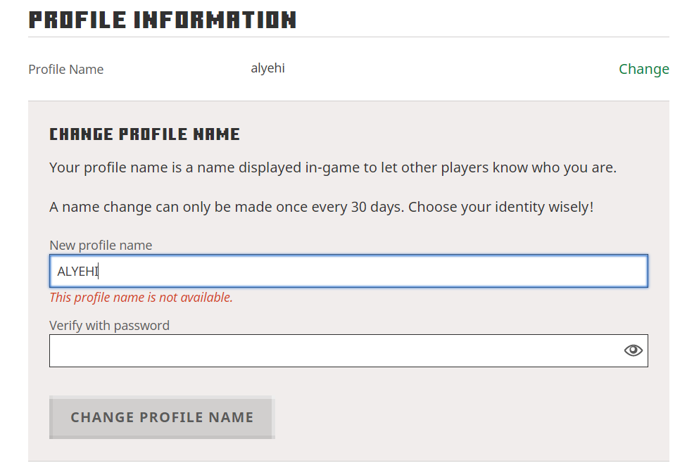 However, I'm only modifying certain letters in my username. For example, my username is 'alyehi' and I'd like to change it straight to 'ALYEHI.' Me and my friend would like to change our usernames to all capitals, unfortunately we can't and we'd like this to be resolved as we do not want to change our usernames to something different and wait another month to change it as we have had these names for quite a long time and it would be devastating if somebody had taken them away from us.